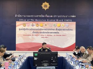 สำหรับการประชุมดังกล่าว ที่ประชุมได้แจ้งเพื่อทราบ ดังนี้ สถานการม์ข่าวเกี่ยวกับยาเสพติดประจำสัปดาห์ ผลการดำเป็นงานด้านการปราบปราม วันที่ 1 มิถุนายน – 28 กรกฎาคม 2567 ผลการดำเนินงานด้านการบำบัดรักษาและฟื้นฟูสมรรถภาพผู้ติดยาเสพติด ผลการดำเนินงานด้านการป้องกัน และผลการดำเนินงานด้านบริหารจัดการ