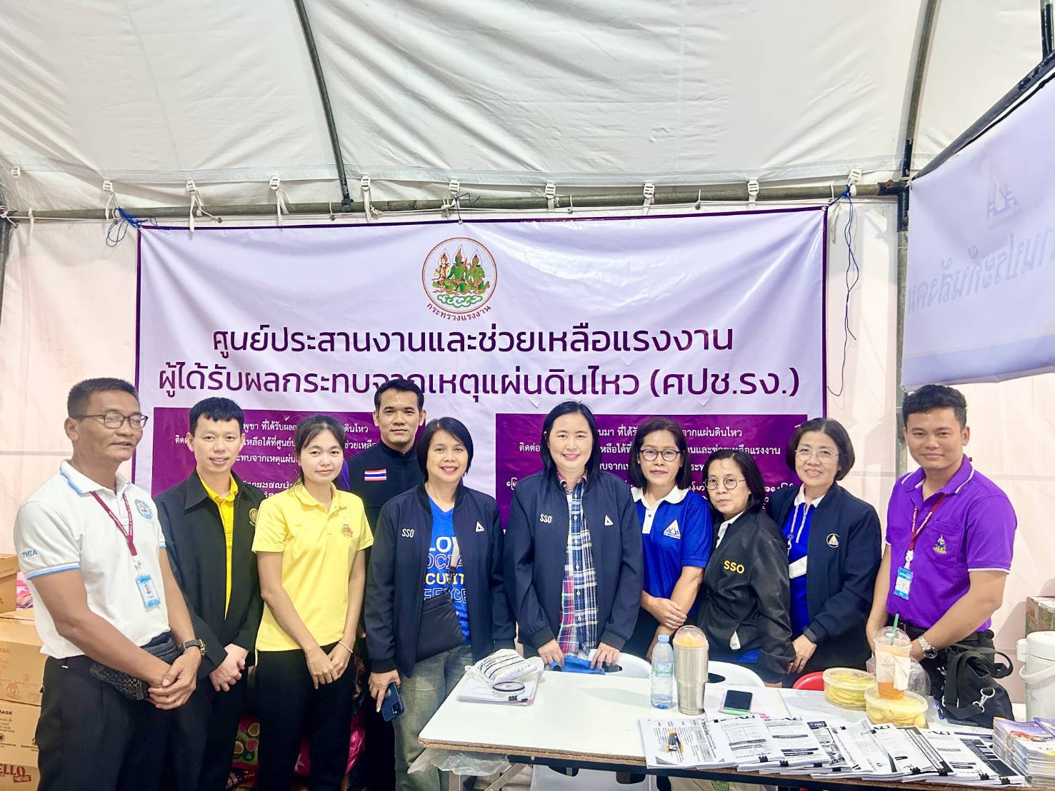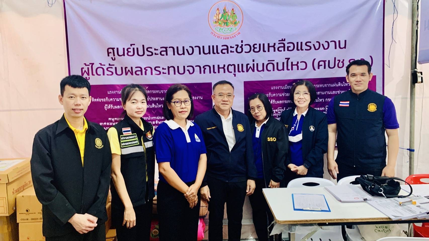 วันที่ 19 เมษายน 2568 นายบุญสงค์ ทัพชัยยุทธ์ ปลัดกระทรวงแรงงาน มอบหมายให้ นายเกริกไกร นาสมยนต์ ที่ปรึกษากฎหมาย ลงพื้นที่เยี่ยมให้กำลังใจเจ้าหน้าที่ผู้ปฏิบัติงาน เพื่อสร้างขวัญกำลังใจ และติดตามการให้ความช่วยเหลือด้านสิทธิประโยชน์แรงงาน บริเวณศูนย์ประสานงานและช่วยเหลือแรงงาน ผู้ได้รับผลกระทบจากเหตุแผ่นดินไหว (ศปช.รง.) และจุดรับแจ้งสิทธิประโยชน์ประกันสังคมผู้ได้รับผลกระทบจากเหตุโครงสร้างอาคารของโครงการก่อสร้างอาคารสำนักงานการตรวจเงินแผ่นดิน ถนนกำแพงเพชร 2 เขตจตุจักร กรุงเทพมหานคร ณ เต็นท์สำนักงานเขตจตุจักร กรุงเทพมหานคร ด้านข้างศูนย์การค้าเจเจมอลล์