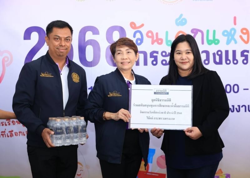เมื่อวันที่ 11 มกราคม 2568 เวลา 11.00 น. นายบุญสงค์ ทัพชัยยุทธ์ ปลัดกระทรวงแรงงาน มอบหมายให้ นางสาวกรจิรัฏฐ์ พงจันทร์ศธร ผู้ช่วยปลัดกระทรวงแรงงาน เป็นผู้แทนรับมอบน้ำดื่มและทุนการศึกษาจาก นางสาวสาวิกา ขุนราม ผู้แทนบริษัท ธรรมนิติ จำกัด (มหาชน) ซึ่งมูลนิธิธรรมนิติ ร่วมสนับสนุนทุนการศึกษา จำนวน 5,000 บาทให้แก่บุตรหลานแรงงานในสถานประกอบการ และน้ำดื่ม จำนวน 240 ขวด ให้แก่กระทรวงแรงงานในการจัดกิจกรรมวันเด็กแห่งชาติ ประจำปี 2568 ณ บริเวณเวทีกลาง โถงชั้นล่าง อาคารกระทรวงแรงงาน