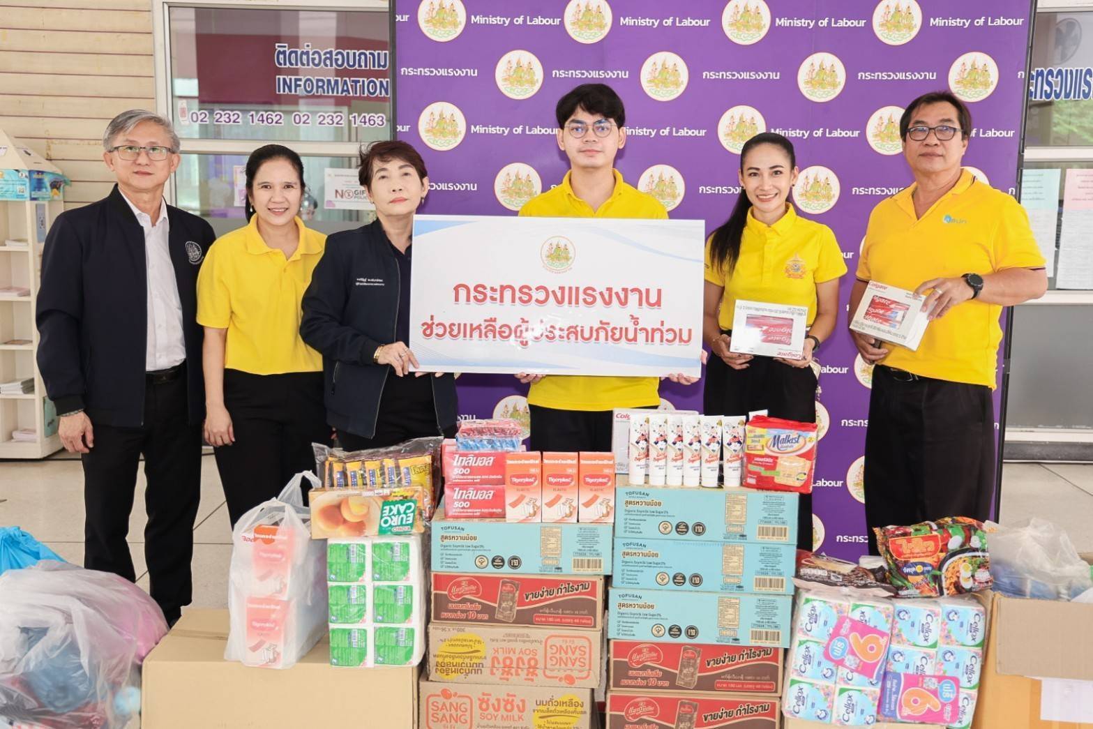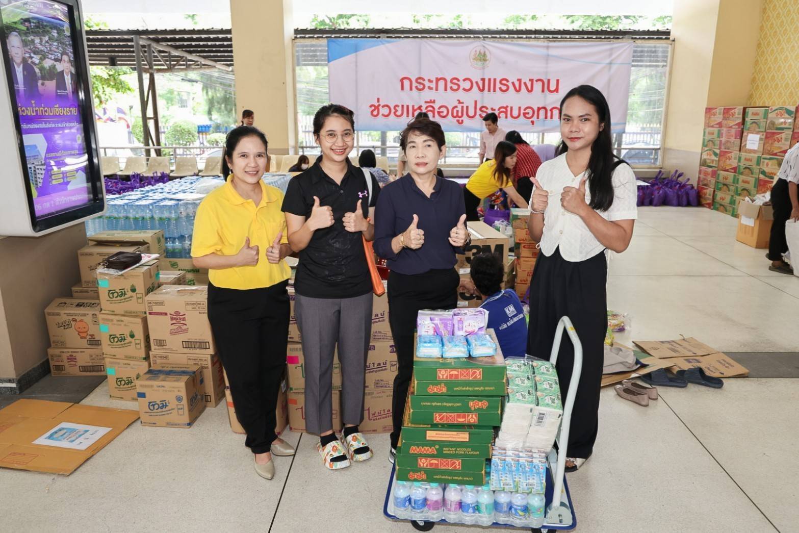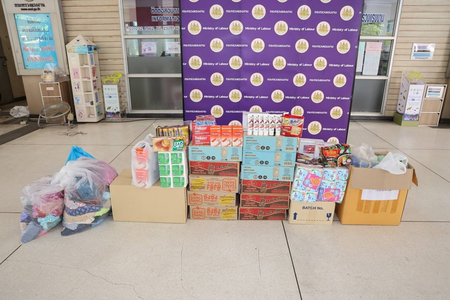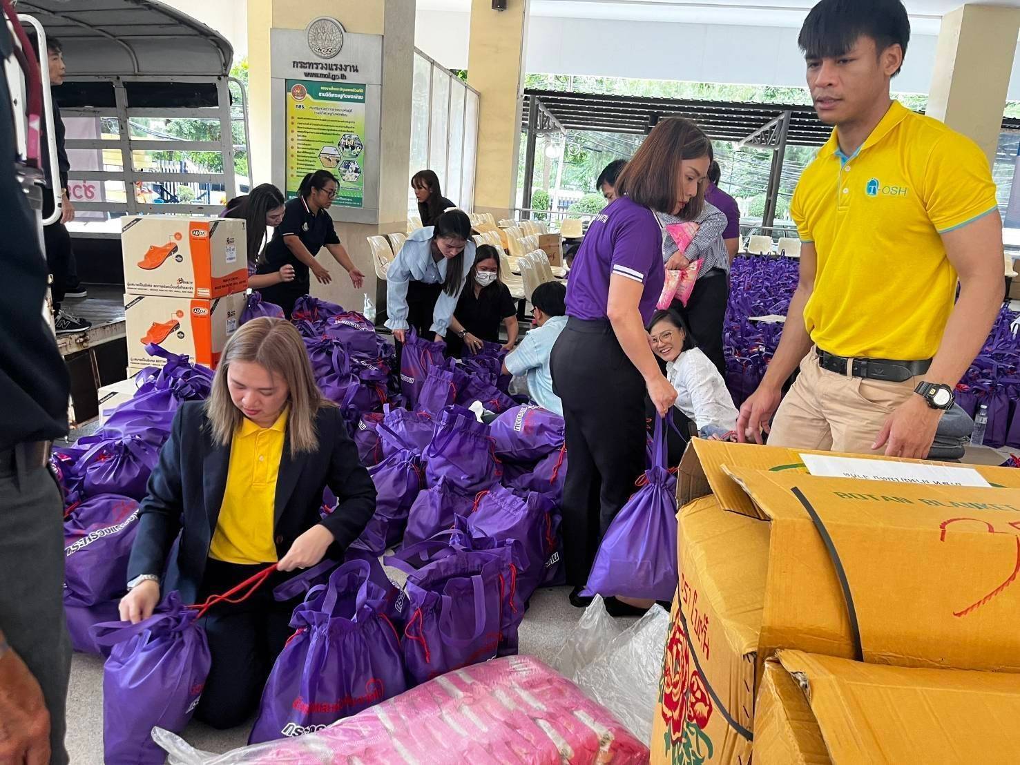 วันที่ 19 กันยายน 2567 นายไพโรจน์ โชติกเสถียร ปลัดกระทรวงแรงงาน มอบหมายให้ นางสาวกรจิรัฏฐ์ พงจันทร์ศธร ผู้ช่วยปลัดกระทรวงแรงงาน เป็นผู้แทนรับมอบเครื่องอุปโภคบริโภคจากหน่วยงาน ในสังกัดกระทรวงแรงงาน ประกอบด้วย สถาบันส่งเสริมความปลอดภัย อาชีวอนามัย และสภาพแวดล้อมในการทำงาน (องค์การมหาชน) นำสิ่งของซึ่งได้รับการสนับสนุนจากผู้ประกอบการภาคเอกชน อาทิ นมกล่อง กระดาษทิชชู ยาและเวชภัณฑ์ น้ำมันพืช เสื้อผ้า เครื่องนุ่งห่ม และขนมจากบริษัท อาหารยอดคุณ สำนักงานเลขานุการศูนย์บัญชาการป้องกันการค้ามนุษย์ด้านแรงงาน (สล.ศปคร.) ร่วมสนับสนุนสิ่งของ อาทิ บะหมี่กึ่งสำเร็จรูป ผ้าอนามัย กระดาษทิชชู ปลากระป๋อง นมกล่อง และน้ำดื่ม หน่วยงานสังกัดกระทรวงแรงงานจังหวัดสมุทรปราการ นำสิ่งของมาสนับสนุน อาทิ ปลากระป๋อง ผักกาดดอง ผ้าห่ม เป็นต้น