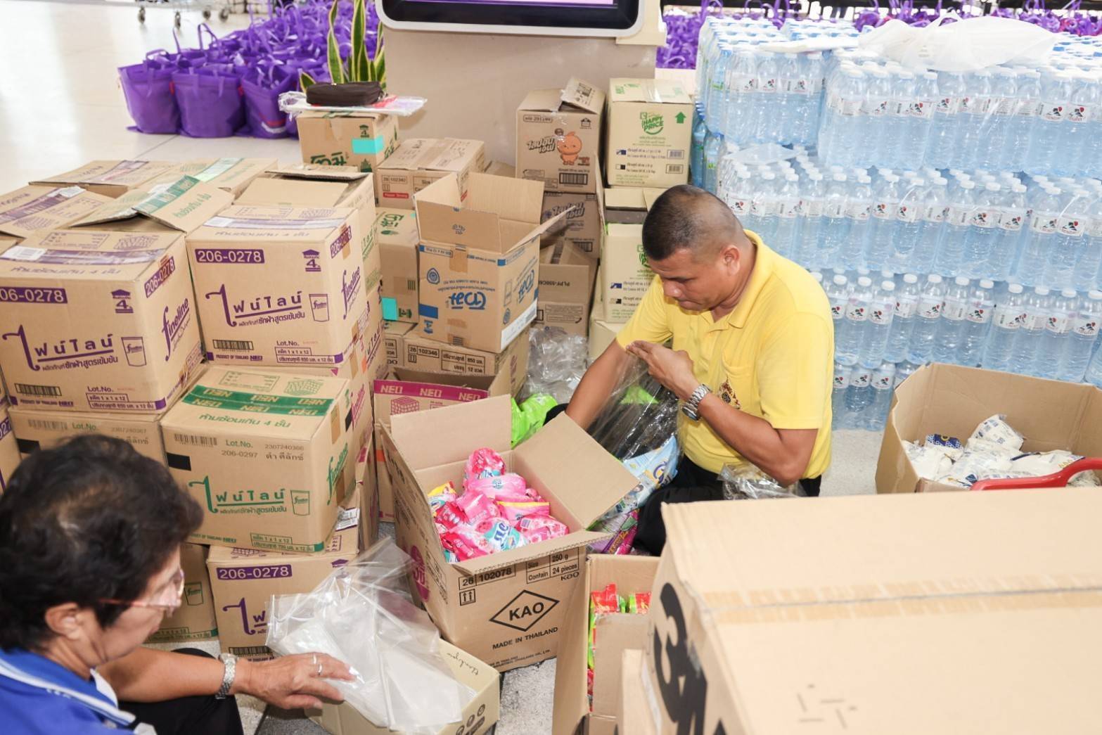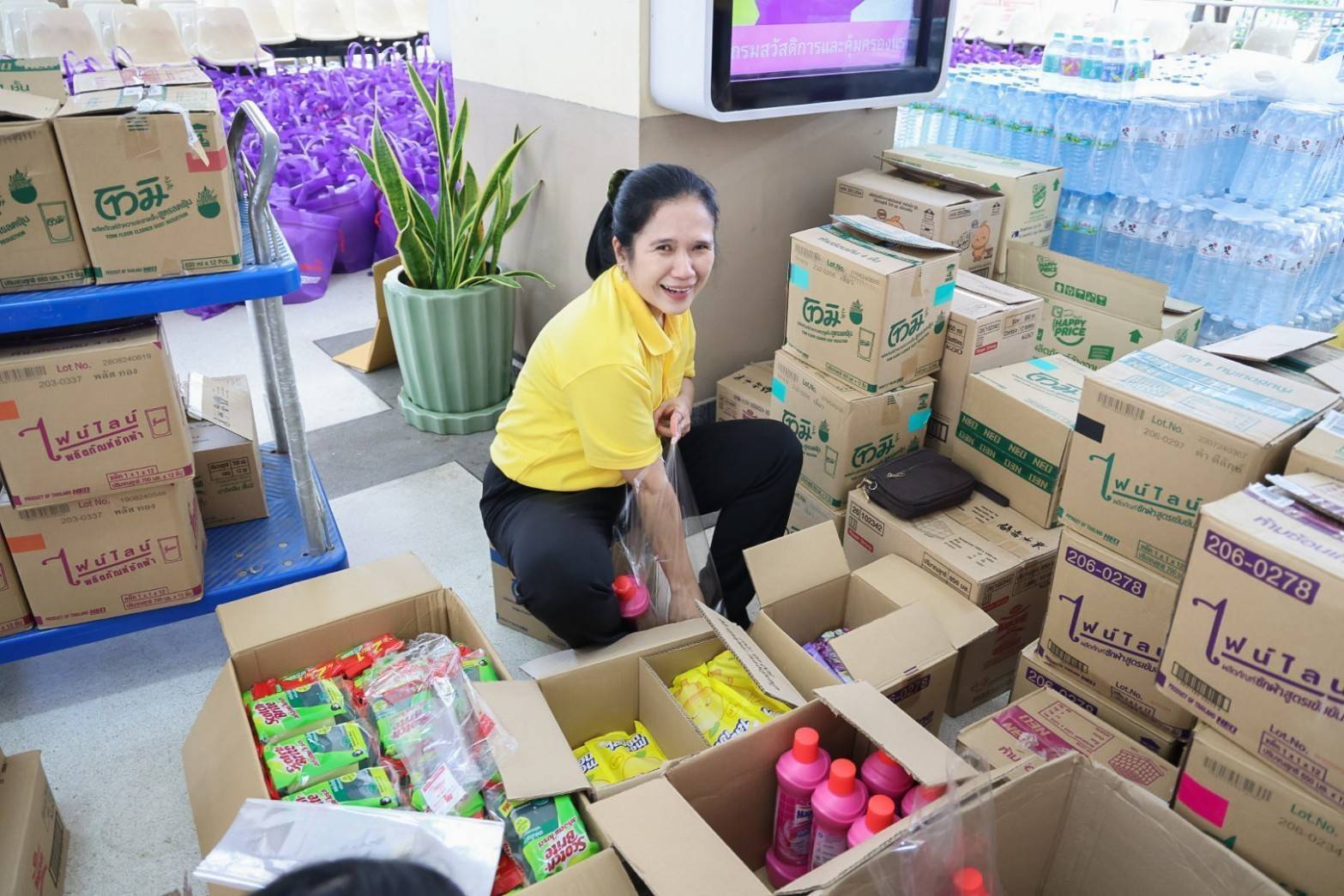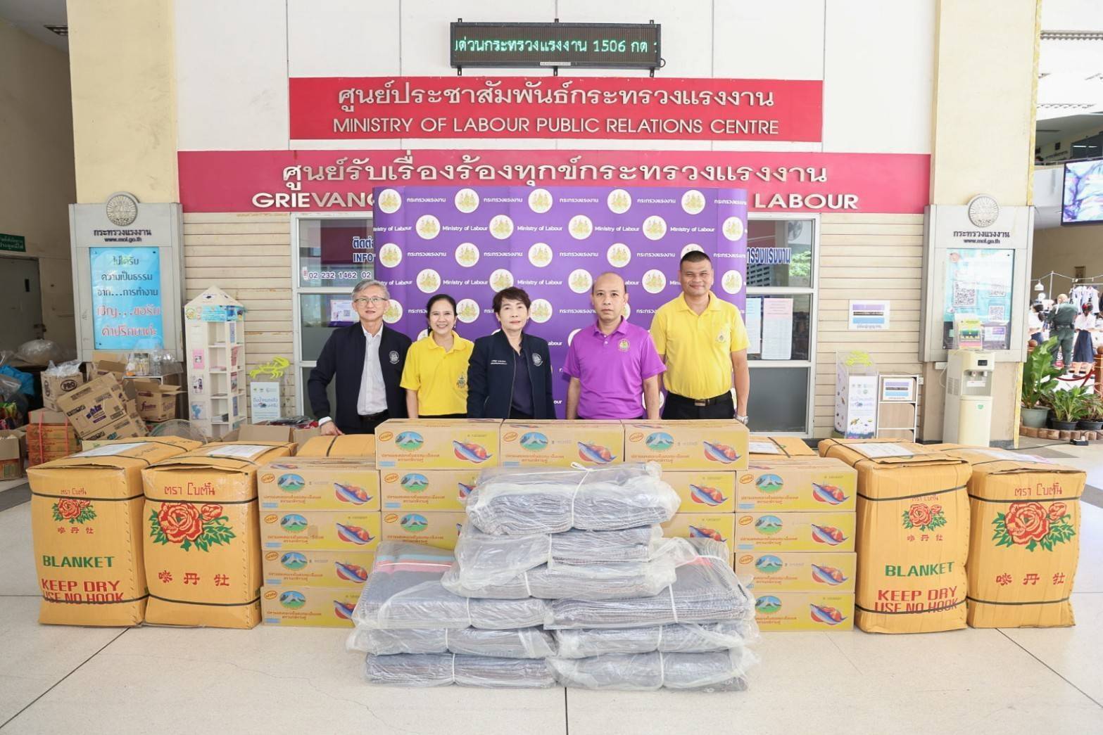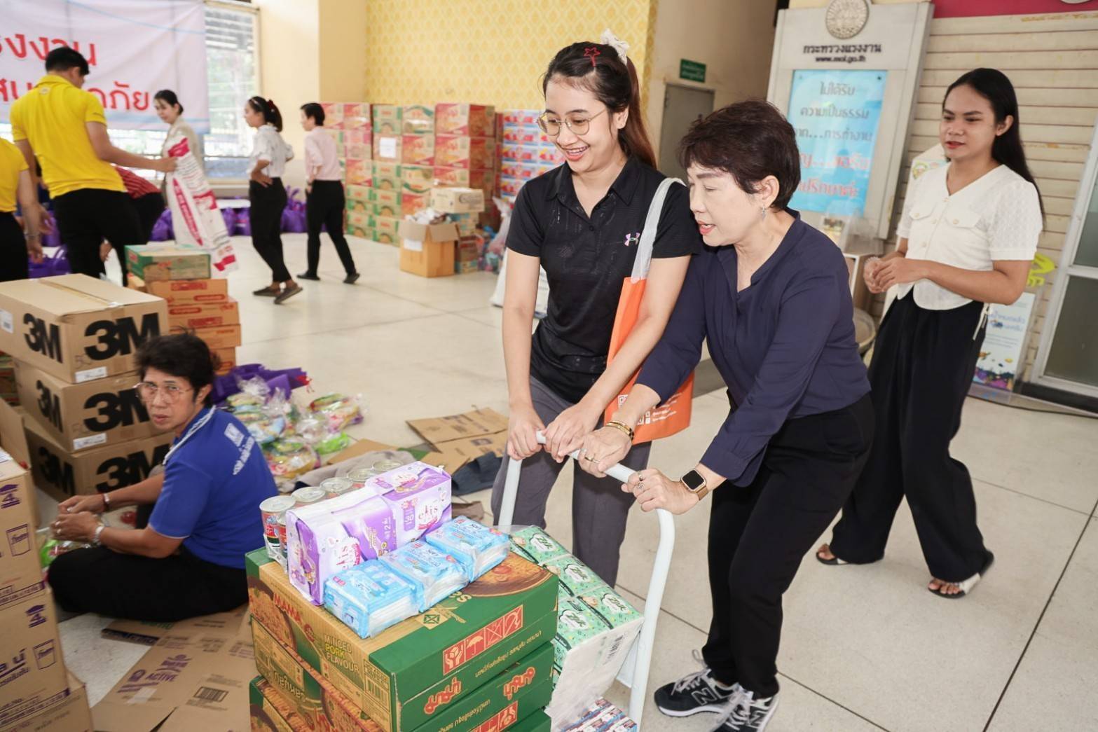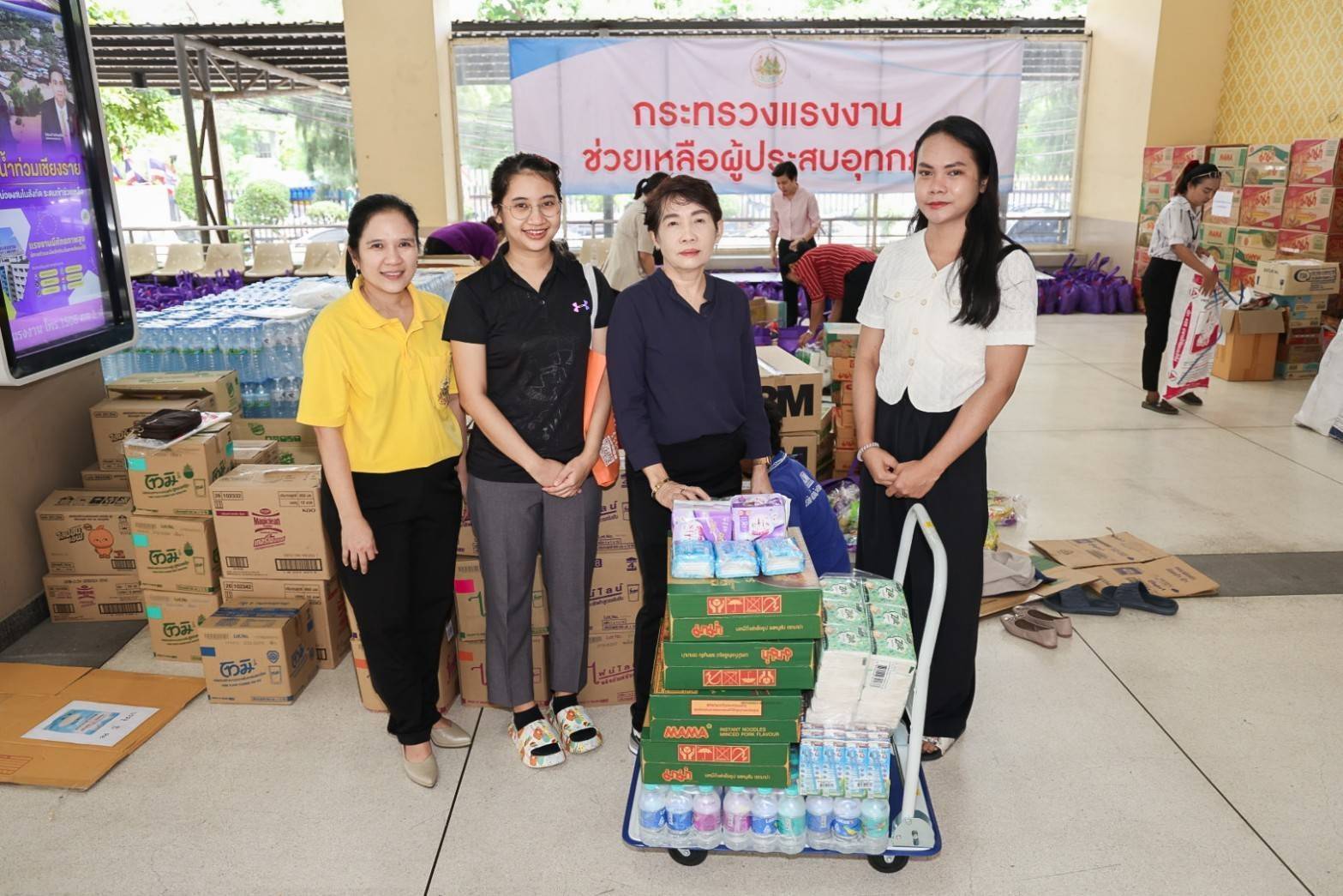 วันที่ 19 กันยายน 2567 นายไพโรจน์ โชติกเสถียร ปลัดกระทรวงแรงงาน มอบหมายให้ นางสาวกรจิรัฏฐ์ พงจันทร์ศธร ผู้ช่วยปลัดกระทรวงแรงงาน เป็นผู้แทนรับมอบเครื่องอุปโภคบริโภคจากหน่วยงาน ในสังกัดกระทรวงแรงงาน ประกอบด้วย สถาบันส่งเสริมความปลอดภัย อาชีวอนามัย และสภาพแวดล้อมในการทำงาน (องค์การมหาชน) นำสิ่งของซึ่งได้รับการสนับสนุนจากผู้ประกอบการภาคเอกชน อาทิ นมกล่อง กระดาษทิชชู ยาและเวชภัณฑ์ น้ำมันพืช เสื้อผ้า เครื่องนุ่งห่ม และขนมจากบริษัท อาหารยอดคุณ สำนักงานเลขานุการศูนย์บัญชาการป้องกันการค้ามนุษย์ด้านแรงงาน (สล.ศปคร.) ร่วมสนับสนุนสิ่งของ อาทิ บะหมี่กึ่งสำเร็จรูป ผ้าอนามัย กระดาษทิชชู ปลากระป๋อง นมกล่อง และน้ำดื่ม หน่วยงานสังกัดกระทรวงแรงงานจังหวัดสมุทรปราการ นำสิ่งของมาสนับสนุน อาทิ ปลากระป๋อง ผักกาดดอง ผ้าห่ม เป็นต้น