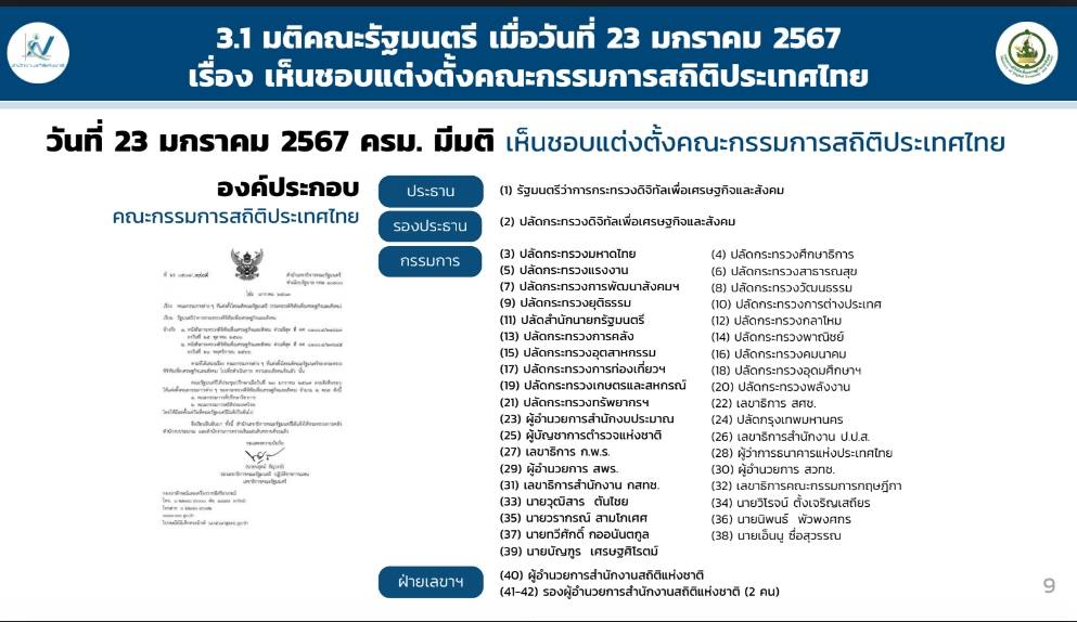 วันที่ 24 มิถุนายน 2567 เวลา 13.30 น. นายไพโรจน์ โชติกเสถียร ปลัดกระทรวงแรงงาน มอบหมายให้ นายศักดินาถ สนธิศักดิ์โยธิน ผู้ช่วยปลัดกระทรวงแรงงาน ร่วมการประชุมคณะกรรมการสถิติประเทศไทย ครั้งที่ 1/2567 ผ่านสื่ออิเล็กทรอนิกส์ (Webex) โดยมี นายประเสริฐ จันทรรวงทอง รัฐมนตรีว่าการกระทรวงดิจิทัลเพื่อเศรษฐกิจและสังคม เป็นประธานการประชุม นายณัฐพล หาจันดา ผู้อำนวยการศูนย์วิจัยและนวัตกรรมแรงงาน และนางสุจิตรา พลฤทธิ์ ผู้อำนวยการกลุ่มงานนโยบายเศรษฐกิจแรงงานรายสาขา ผู้แทนกองเศรษฐกิจการแรงงาน เข้าร่วมการประชุมดังกล่าวด้วย ณ ประชุมกลุ่มงานสนับสนุนเครือข่ายและประสานภูมิภาค ชั้น 2 อาคารกระทรวงแรงงาน