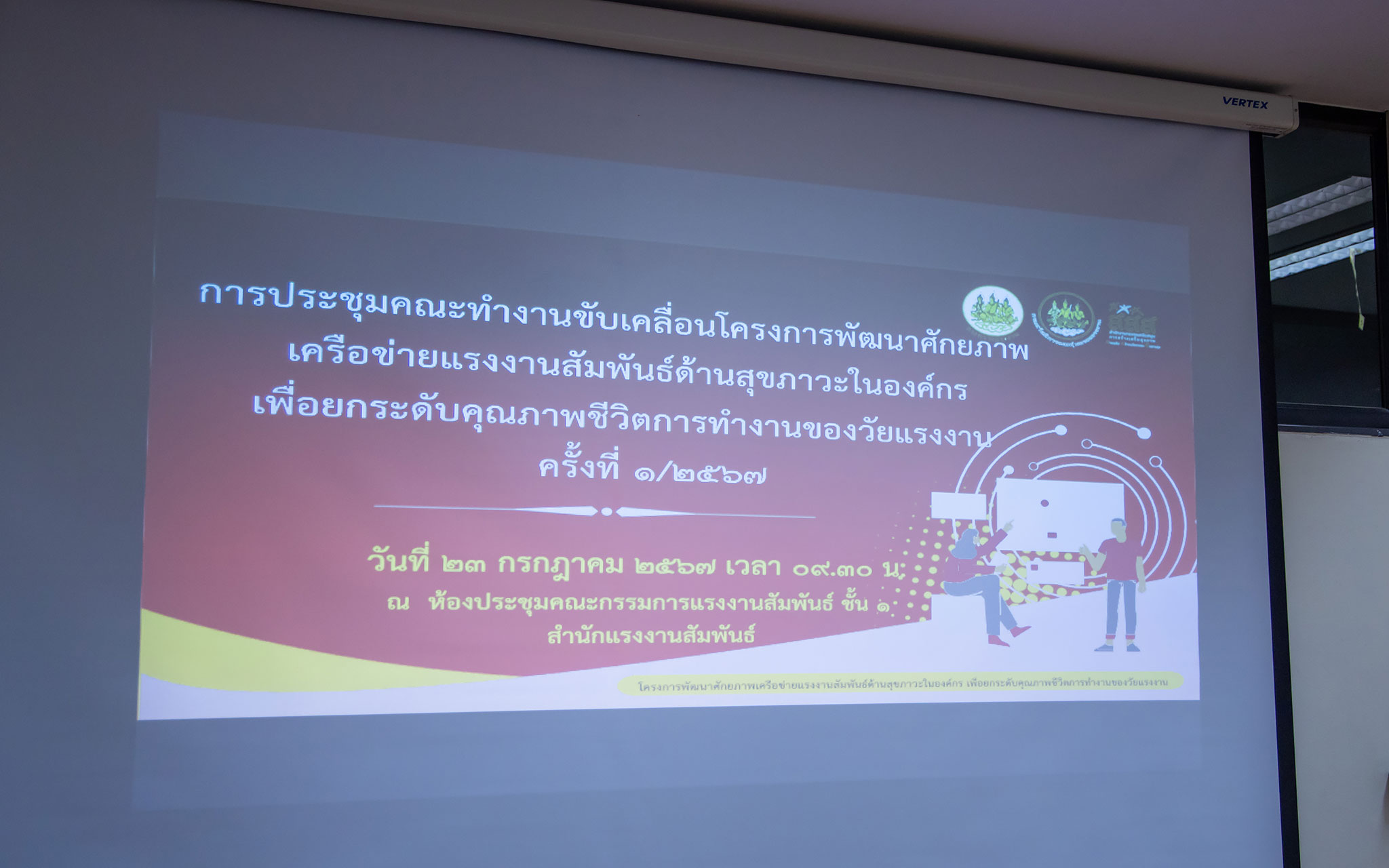 วันที่ 23 กรกฎาคม 2567 เวลา 09.30 น. นายไพโรจน์ โชติกเสถียร ปลัดกระทรวงแรงงาน มอบหมายให้ นางสาวกรจิรัฏฐ์ พงจันทร์ศธร ผู้ช่วยปลัดกระทรวงแรงงาน เข้าร่วมการประชุมคณะทำงานขับเคลื่อนโครงการพัฒนาศักยภาพเครือข่ายแรงงานสัมพันธ์ด้านสุขภาวะในองค์กรเพื่อยกระดับคุณภาพชีวิตการทำงานของวัยแรงงาน ครั้งที่ 1/2567 โดยมี นางสาวกาญจนา พูลแก้ว รองอธิบดีกรมสวัสดิการและคุ้มครองแรงงาน เป็นประธานการประชุม ณ ห้องประชุมคณะกรรมการแรงงานสัมพันธ์ ชั้น 2 กรมสวัสดิการและคุ้มครองแรงงาน อาคารกระทรวงแรงงาน