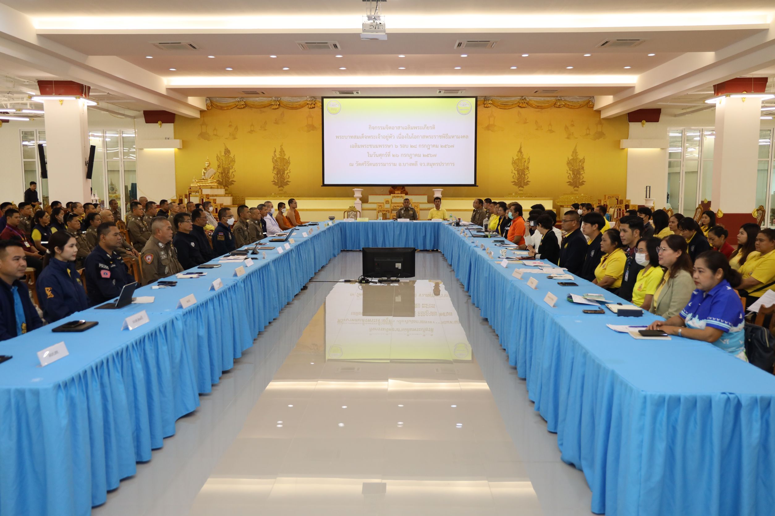 วันที่ 19 กรกฎาคม 2567 เวลา 13.30 น. นายไพโรจน์ โชติกเสถียร ปลัดกระทรวงแรงงาน มอบหมายให้ นางสาวกรจิรัฏฐ์ พงจันทร์ศธร ผู้ช่วยปลัดกระทรวงแรงงาน เข้าร่วมประชุมร่วมกับหน่วยงานภาครัฐ ร่วมหารือในการจัด “งานเฉลิมพระเกียรติพระบาทสมเด็จพระเจ้าอยู่หัว เนื่องในโอกาสพระราชพิธีมหามงคลเฉลิมพระชนมพรรษา 6 รอบ 28 กรกฎาคม 2567 โดยมี พลตำรวจตรีวิชิต บุญชินวุฒิกุล ผู้บังคับการตำรวจภูธรจังหวัดสมุทรปราการ เป็นประธานการประชุม พร้อมด้วยหน่วยงานที่เกี่ยวข้อง เข้าร่วม ณ ห้องประชุมบัววารี วัดศรีรัตนธรรมาราม ตำบลบางโฉลง อำเภอบางพลี จังหวัดสมุทรปราการ