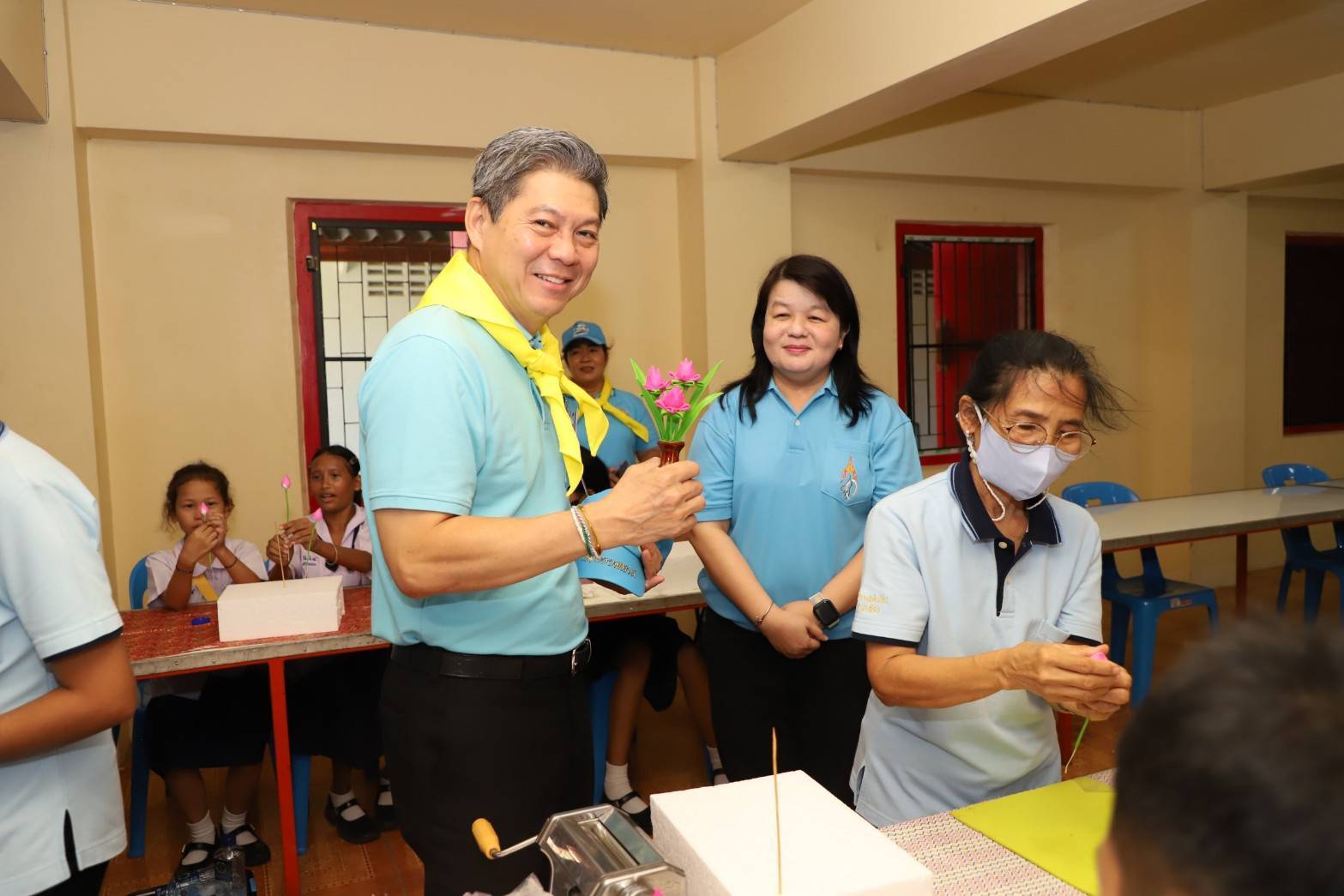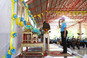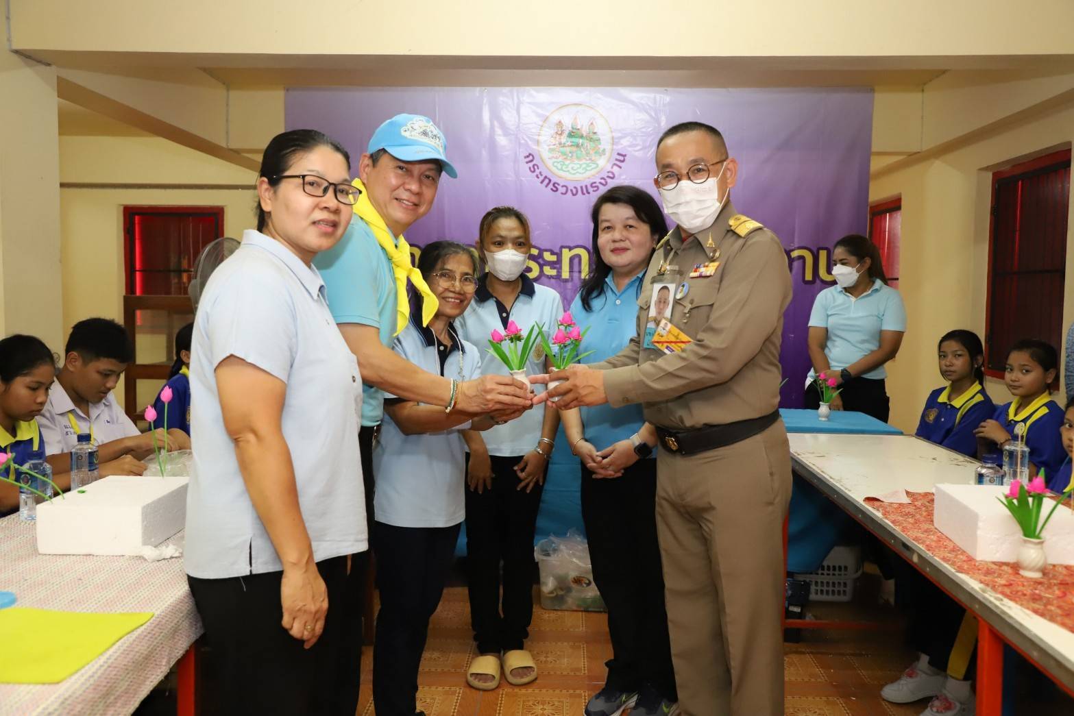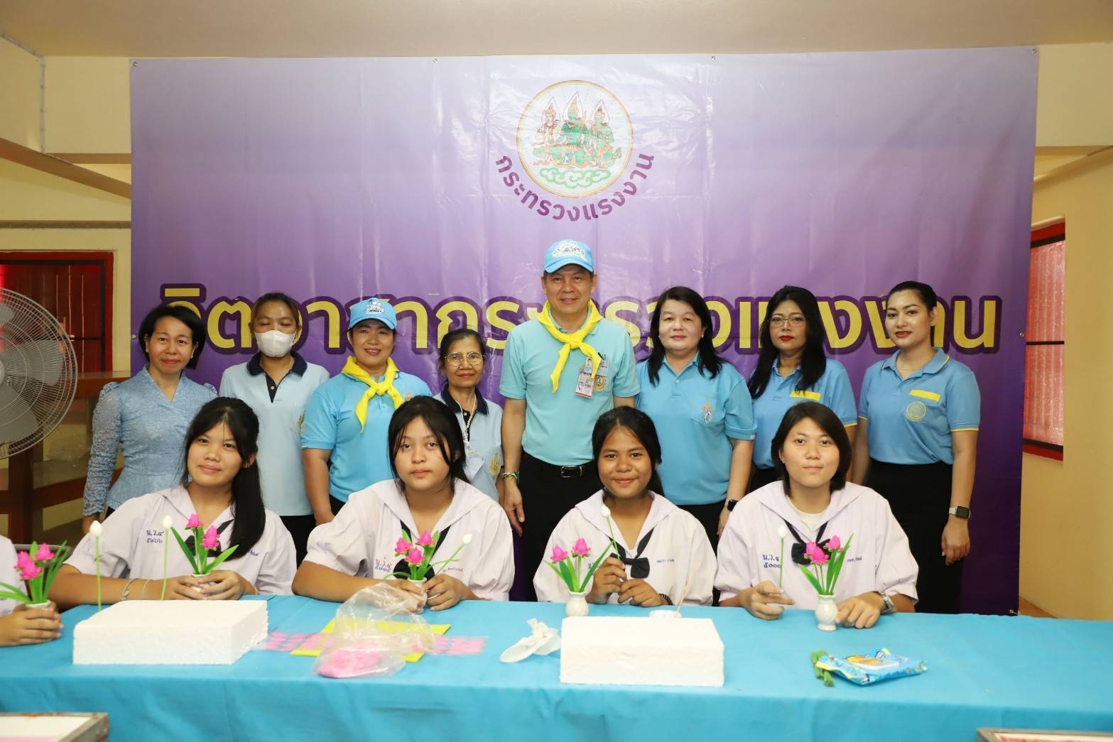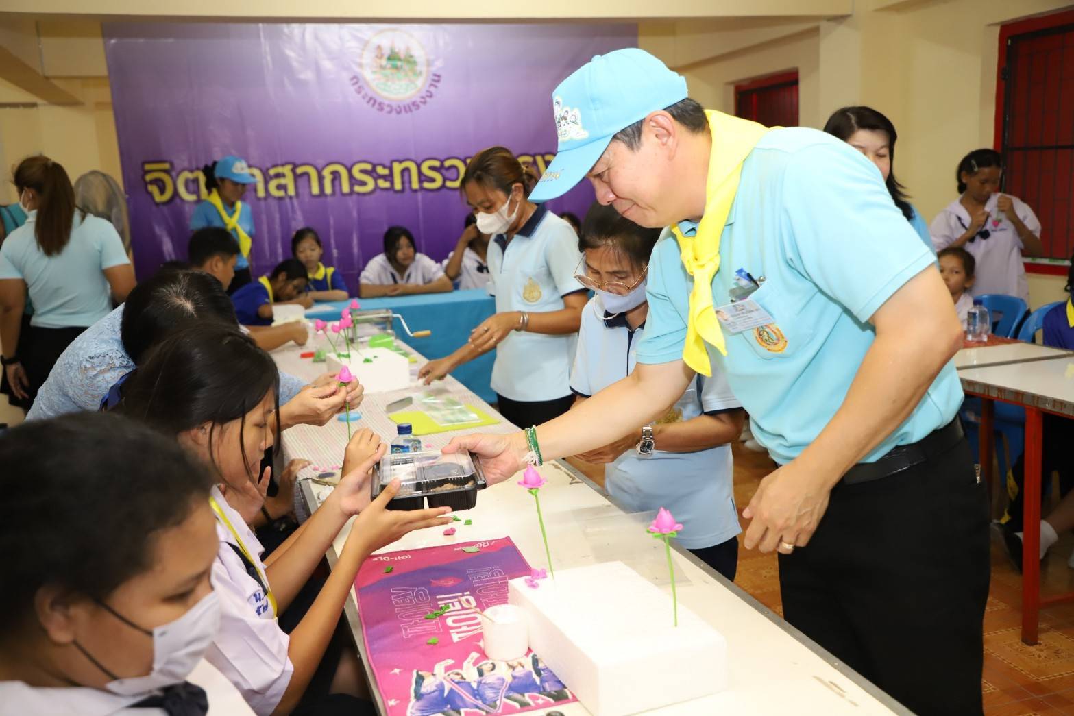 นายศักดินาถ กล่าวว่า ในวันนี้ผมได้รับมอบหมายจากท่านปลัดกระทรวงแรงงานเป็นผู้แทนให้มาร่วมพิธีเปิดและตรวจเยี่ยมกิจกรรมงานเฉลิมพระเกียรติฯ และเยี่ยมชมกิจกรรมจิตอาสาออกหน่วยบริการแก่ประชาชนของกระทรวงแรงงาน ซึ่งกระทรวงแรงงานได้ร่วมกับศูนย์อำนวยการใหญ่จิตอาสาพระราชทาน (ศอญ.) กองบัญชาการกองทัพไทย และหน่วยงานต่างๆ จัดขึ้น สำหรับที่วัดบางแพรกเหนือ จ.นนทบุรี แห่งนี้ ในส่วนของหน่วยงานในสังกัดกระทรวงแรงงาน กรมการจัดหางาน ได้ร่วมสนับสนุนการจัดกิจกรรมการสาธิตและทดลองฝึกปฏิบัติอาชีพอิสระ การปั้นดอกไม้จากดินไทย ทั้งช่วงเช้าและช่วงบ่าย กระทรวงแรงงาน จึงขอเชิญชวนประชาชน เข้าร่วมงานและรับบริการฝึกอาชีพได้ตั้งแต่เวลา 08.30 – 16.30 น. โดยให้บริการฟรีไม่เสียค่าใช้จ่าย