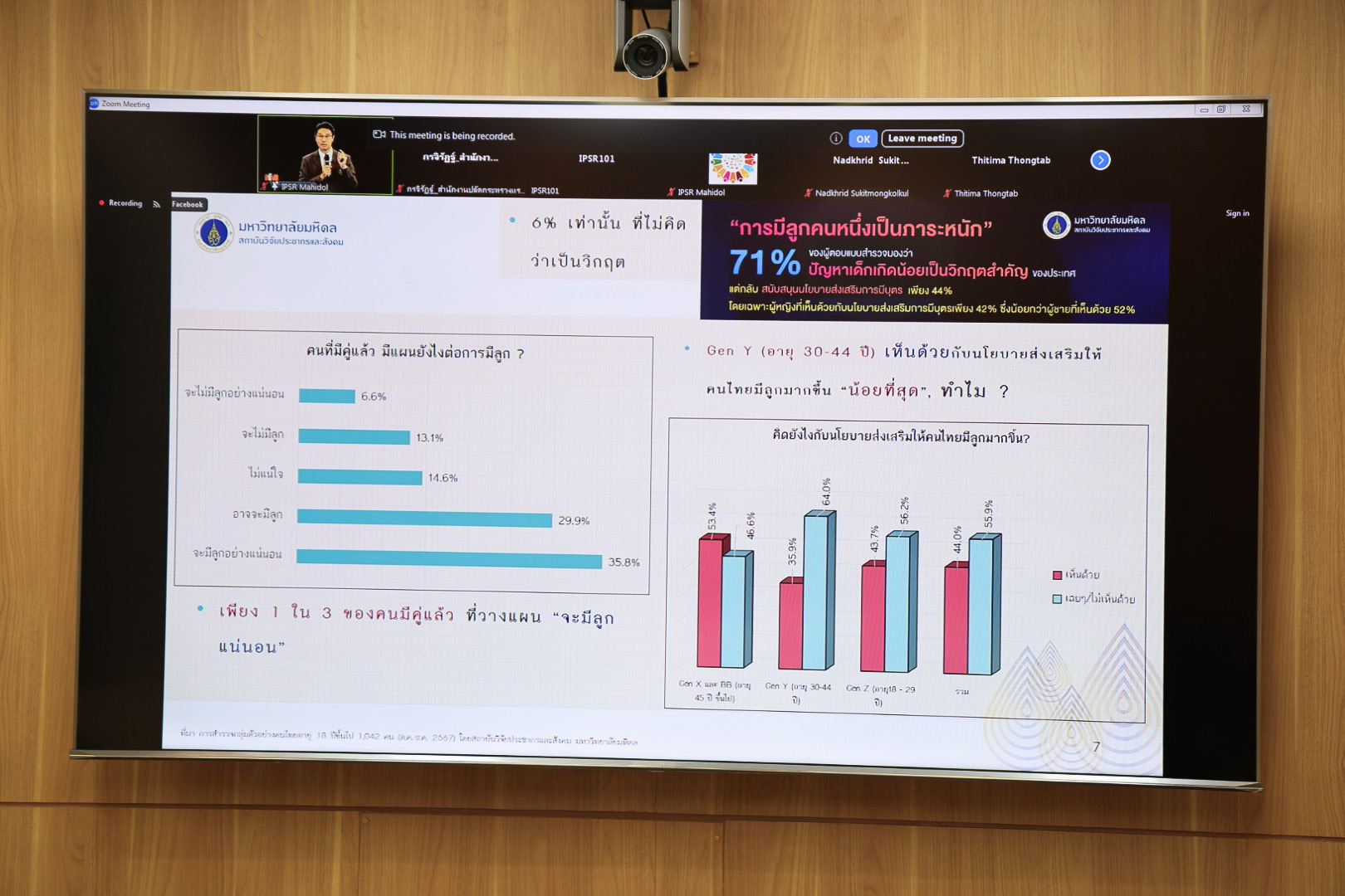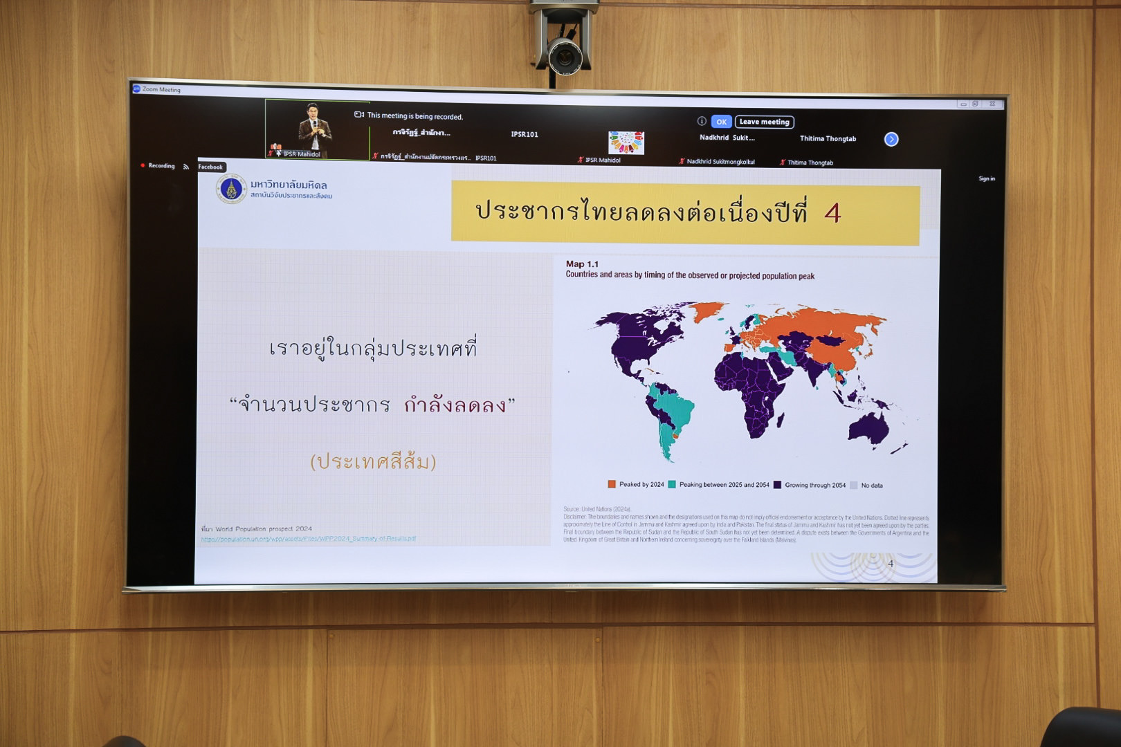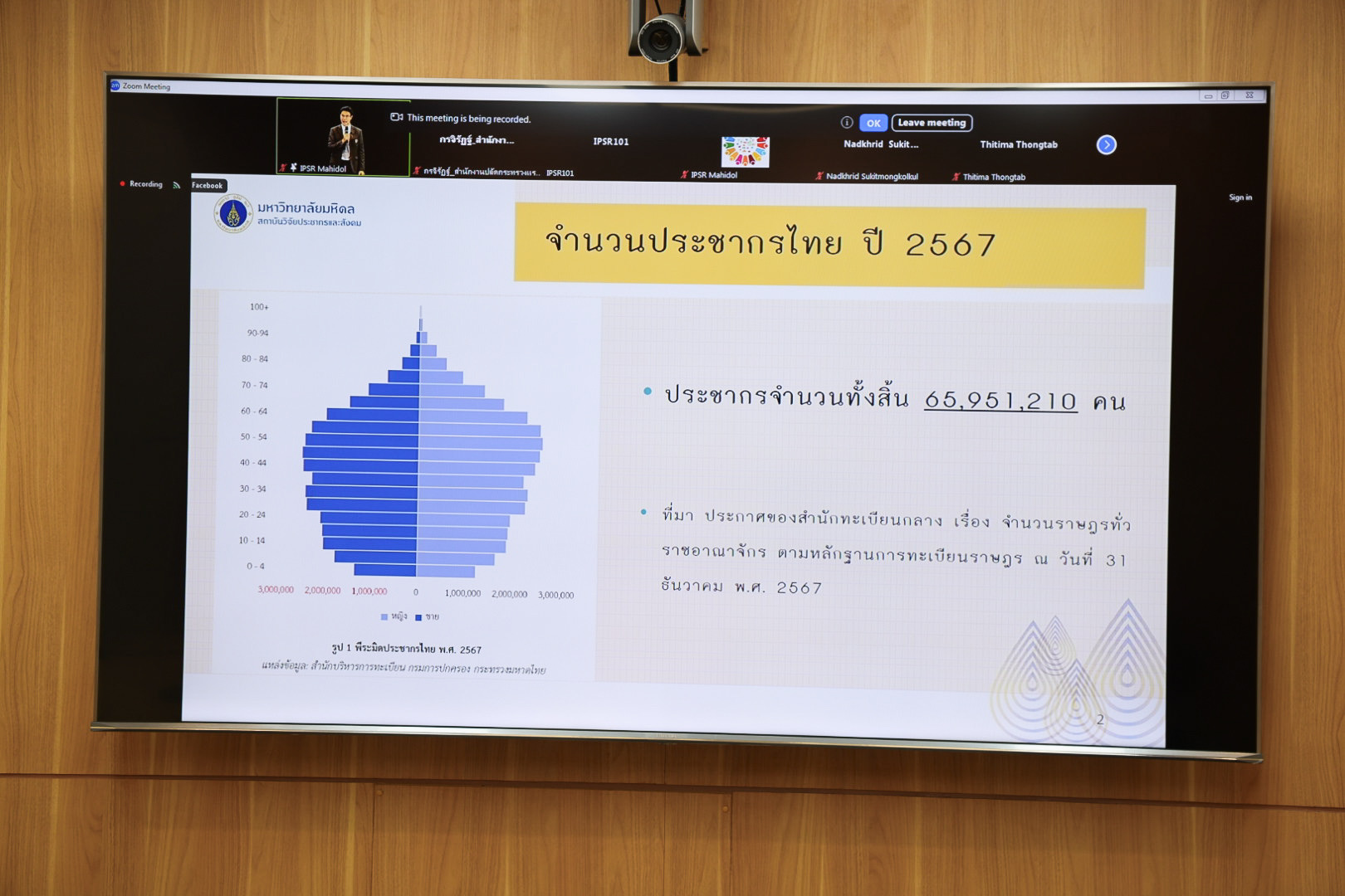 วันที่ 15 มกราคม 2568 เวลา 14.00 น. นายบุญสงค์ ทัพชัยยุทธ์ ปลัดกระทรวงแรงงาน มอบหมายให้ นางสาวกรจิรัฏฐ์ พงจันทร์ศธร ผู้ช่วยปลัดกระทรวงแรงงาน ร่วมเป็นเกียรติงานแถลงข่าวรายงานสถานการณ์ประชากรไทย 2567 “สถานการณ์เด็กเกิดน้อยและสังคมสูงอายุ” โดยมี รองศาสตราจารย์ ดร.เฉลิมพล แจ่มจันทร์ ผู้อำนวยการสถาบันวิจัยประชากรและสังคม มหาวิทยาลัยมหิดล เป็นผู้แถลงข่าวสถานการณ์ ณ ห้องประชุมกองยุทธศาสตร์และแผนงาน ชั้น 13 ผ่านระบบ Zoom Cloud Meeting และ แบบออนไซต์ ณ ห้องประชาสังคมอุดมพัฒน์ ชั้น 1 สถาบันวิจัยประชากรและสังคม มหาวิทยาลัยมหิดล ศาลายา