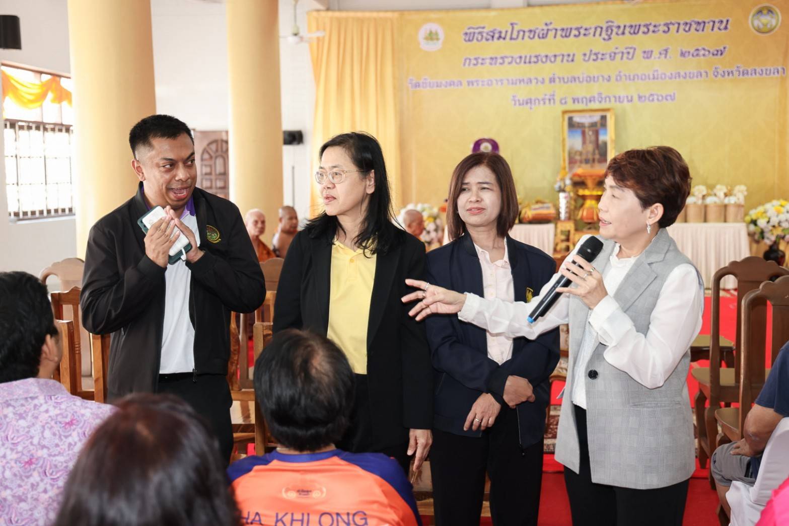 วันที่ 7 พฤศจิกายน 257 เวลา 15.30 น.นายบุญสงค์ ทัพชัยยุทธ์ ปลัดกระทรวงแรงงาน มอบหมายให้ นางสาวกรจิรัฏฐ์ พงจันทร์ศธร ผู้ช่วยปลัดกระทรวงแรงงาน และคณะ ลงพื้นที่เตรียมความพร้อมของสถานที่จัดงานพิธีถวายผ้าพระกฐินพระราชทานของกระทรวงแรงงาน ประจำปี 2567 โดยมี หัวหน้าส่วนราชการสังกัดกระทรวงแรงงานจังหวัดสงขลา กรรมการวัด และหน่วยงานที่เกี่ยวข้องเข้าร่วม