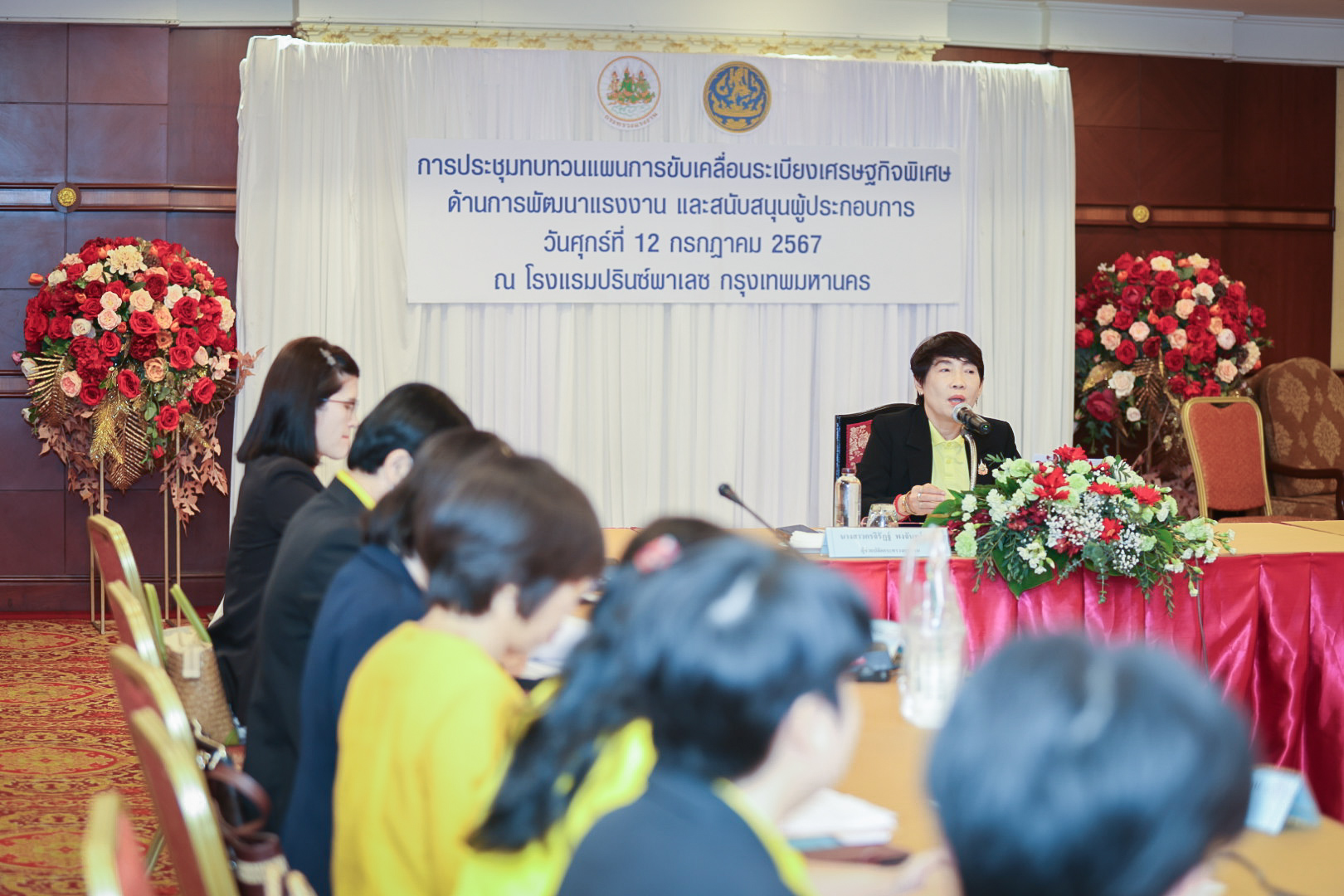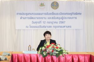 วันที่ 12 กรกฎาคม 2567 เวลา 09.30 น. นายไพโรจน์ โชติกเสถียร ปลัดกระทรวงแรงงาน มอบหมายให้ นางสาวกรจิรัฏฐ์ พงจันทร์ศธร ผู้ช่วยปลัดกระทรวงแรงงาน เป็นประธานในพิธีเปิดการประชุมทบทวนแผนการขับเคลื่อนระเบียงเศรษฐกิจพิเศษด้านการพัฒนาแรงงานและสนับสนุนผู้ประกอบการ โดยมี นางสาววารุณี ลังกาพินธ์ ผู้อำนวยการกองยุทธศาสตร์และแผนงาน สำนักงานปลัดกระทรวงแรงงาน เป็นผู้กล่าวรายงาน ณ ห้องพัชราวดี 1 – 2 ชั้น 11 อาคาร 2 โรงแรมปรินซ์พาเลซ กรุงเทพมหานคร