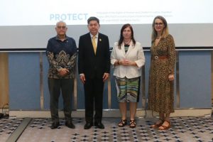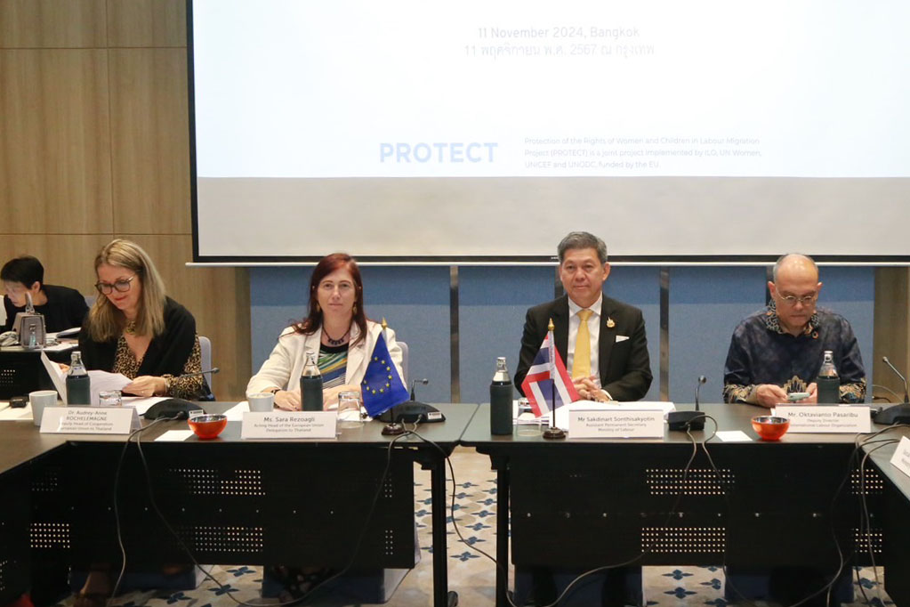 วันที่ 11 พฤศจิกายน เวลา 13.30 น. นายบุญสงค์ ทัพชัยยุทธ์ ปลัดกระทรวงแรงงาน มอบหมายให้ นายศักดินาถ สนธิศักดิ์โยธิน ผู้ช่วยปลัดกระทรวงแรงงาน เป็นประธานร่วมกับ นางซาร่า เรโซอาญิ รักษาการหัวหน้าคณะผู้แทนสหภาพยุโรบประจำประเทศไทย เปิดการประชุมคณะกรรมการที่ปรึกษาโครงการระดับชาติ ครั้งที่ 1 โครงการ PROTECT : ส่งเสริมงานที่มีคุณค่าและลดความเปราะบางสำหรับผู้หญิงและเด็กในบริบทการโยกย้ายถิ่นฐานในเอเชียตะวันออกเฉียงใต้ ณ ห้องเอราวัณ 1 – 2 ชั้น M โรงแรมคอร์ทยาร์ด บาย มาริออท ถนนราชดำริ เขตปทุมวัน กรุงเทพมหานคร