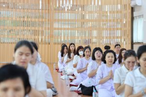 วันที่ 3 เมษายน 2567 เวลา 09.00 น. นายไพโรจน์ โชติกเสถียร ปลัดกระทรวงแรงงาน มอบหมายให้ นางสาวกรจิรัฏฐ์ พงจันทร์ศธร ผู้ช่วยปลัดกระทรวงแรงงาน นำข้าราชการ พนักงาน และเจ้าหน้าที่หน่วยงานในสังกัดสำนักงานปลัดกระทรวงแรงงาน จำนวน 52 คน เข้าร่วมกิจกรรมฝึกปฏิบัติธรรม โครงการสร้างเสริมหลักธรรม เจริญศีลภาวนาแก่บุคลากรสำนักงานปลัดกระทรวงแรงงาน ซึ่งกิจกรรมดังกล่าวจัดขึ้น ระหว่างวันที่ 3 – 4 เมษายน 2567 เพื่อถวายเป็นพระราชกุศล เฉลิมพระเกียรติพระบาทสมเด็จพระเจ้าอยู่หัว เนื่องในโอกาสมหามงคลเฉลิมพระชนมพรรษา 6 รอบ 28 กรกฎาคม 2567 ณ วัดนาคปรก เขตภาษีเจริญ กรุงเทพฯ