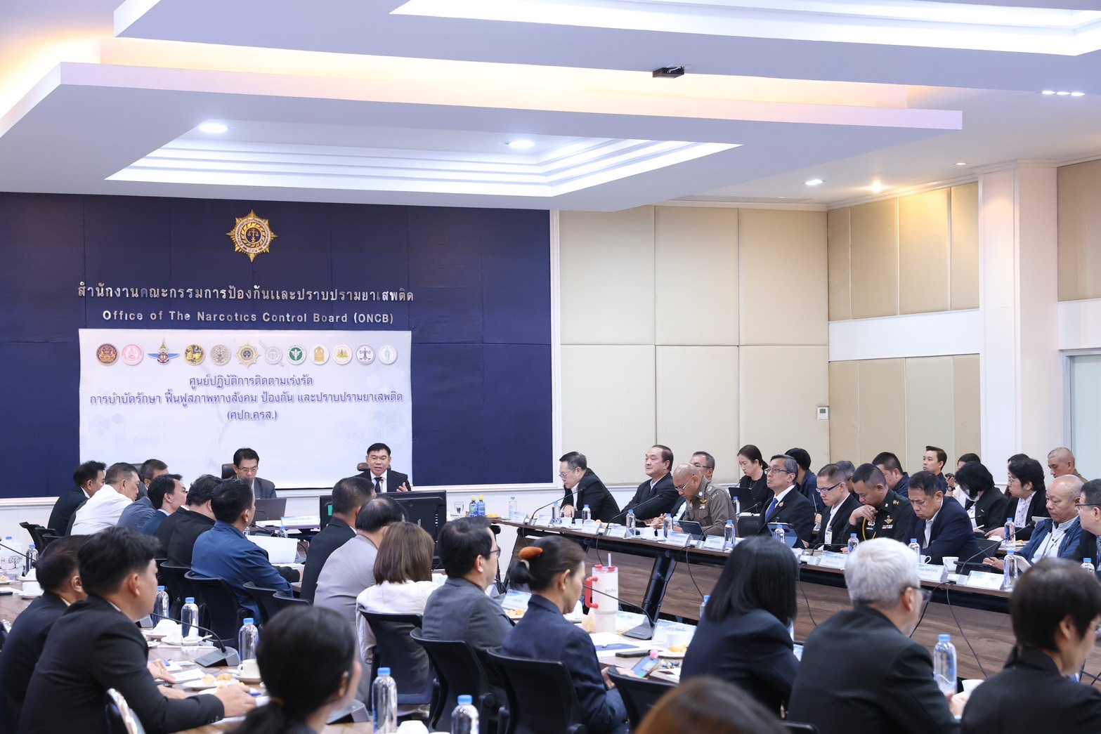 วันที่ 27 มีนาคม 2568 เวลา 09.30 น. นายบุญสงค์ ทัพชัยยุทธ์ ปลัดกระทรวงแรงงาน มอบหมายให้ นายศักดินาถ สนธิศักดิ์โยธิน ผู้ช่วยปลัดกระทรวงแรงงาน ร่วมการประชุมศูนย์ปฏิบัติการติดตามเร่งรัดการบำบัดรักษา ฟื้นฟูสภาพทางสังคม ป้องกัน และปราบปรามยาเสพติด ครั้งที่ 6/2568 โดยมี พลตำรวจโท ภาณุรัตน์ หลักบุญ เลขาธิการ ป.ป.ส. เป็นประธานการประชุม ณ ห้องประชุมชิดชัย วรรณสถิตย์ อาคาร 2 ชั้น 3 สำนักงาน ป.ป.ส. และผ่านสื่ออิเล็กทรอนิกส์ ระบบ Cisco Webex Meetings ไปยังศูนย์อำนวยการป้องกันและปราบปรามยาเสพติดจังหวัด 76 จังหวัด และกรุงเทพมหานคร