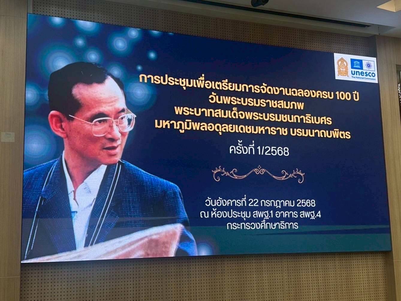 วันที่ 22 กรกฎาคม 2568 เวลา 13.30 น. นายบุญสงค์ ทัพชัยยุทธ์ ปลัดกระทรวงแรงงาน มอบหมายให้ นางสาวกรจิรัฏฐ์ พงจันทร์ศธร ผู้ช่วยปลัดกระทรวงแรงงาน ร่วมประชุมเพื่อเตรียมการจัดงานฉลองครบ 100 ปี วันพระบรมราชสมภพ พระบาทสมเด็จพระบรมชนกาธิเบศร มหาภูมิพลอดุลยเดชมหาราช บรมนาถบพิตร ครั้งที่ 1/2568 โดยมี นายพิเชฐ โพธิ์ภักดี รองปลัดกระทรวงศึกษาธิการ เป็นประธานการประชุม ฯ ณ ห้องประชุม สพฐ.1 อาคาร สพฐ 4 ชั้น 2 กระทรวงศึกษาธิการ