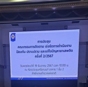 วันที่ 19 ธันวาคม 2567 เวลา 10.00 น.นายบุญสงค์ ทัพชัยยุทธ์ ปลัดกระทรวงแรงงาน มอบหมายให้ นายพิเชษฐ์ ทองพันธ์ ผู้ตรวจราชการกระทรวงแรงงาน ร่วมการประชุมคณะกรรมการติดตาม เร่งรัดการดำเนินงานป้องกัน ปราบปราม และแก้ไขปัญหายาเสพติด ครั้งที่ 2/2567 โดย พันตำรวจเอกทวี สอดส่อง รัฐมนตรีว่าการกระทรวงยุติธรรม เป็นประธานการประชุม ณ ห้องประชุมศรียานนท์ อาคาร 1 ชั้น 2 สำนักงานตำรวจแห่งชาติ สำหรับการประชุมดังกล่าว ที่ประชุมได้พิจารณาแนวทางการแก้ไขปัญหาผู้ป่วยที่มีอาการทางจิตเวชจากยาเสพติด แต่งตั้งคณะอนุกรรมการร่วมแก้ไขปัญหายาเสพติดเพื่อทำให้ประชาชนมีความสุข แต่งตั้งคณะอนุกรรมการฟื้นฟูสภาพทางสังคมผู้อยู่ในกระบวนการยุติธรรม แต่งตั้งคณะอนุกรรมการพิจารณาบำเหน็จความชอบกรณีพิเศษให้แก่เจ้าหน้าที่ผู้ปฏิบัติงานด้านยาเสพติด ปรับปรุงการจัดตั้งศูนย์ปฏิบัติการติดตามเร่งรัดการบำบัดรักษา ฟื้นฟูสภาพทางสังคม ป้องกัน และปราบปรามยาเสพติด และร่างแผนปฏิบัติการป้องกันและแก้ไขปัญหายาเสพติดพื้นที่จังหวัดชายแดนภาคใต้ แบบบูรณาการในทุกมิติ (ปีงบประมาณ พ.ศ.2568 – 2570)