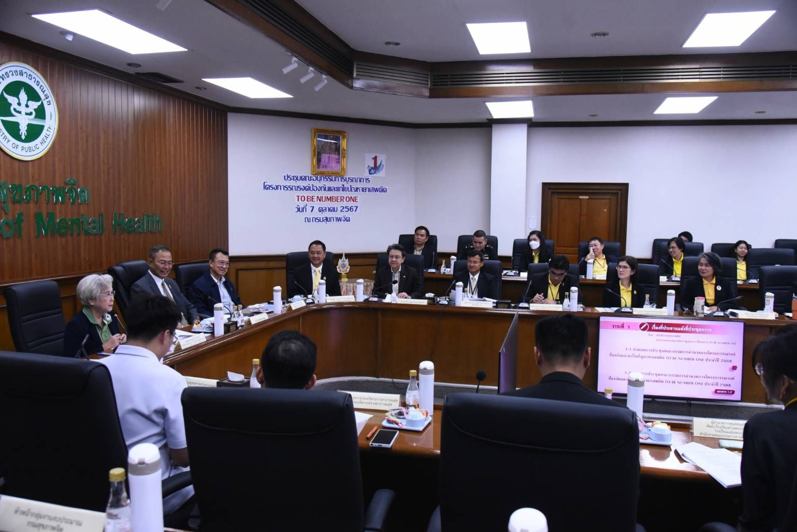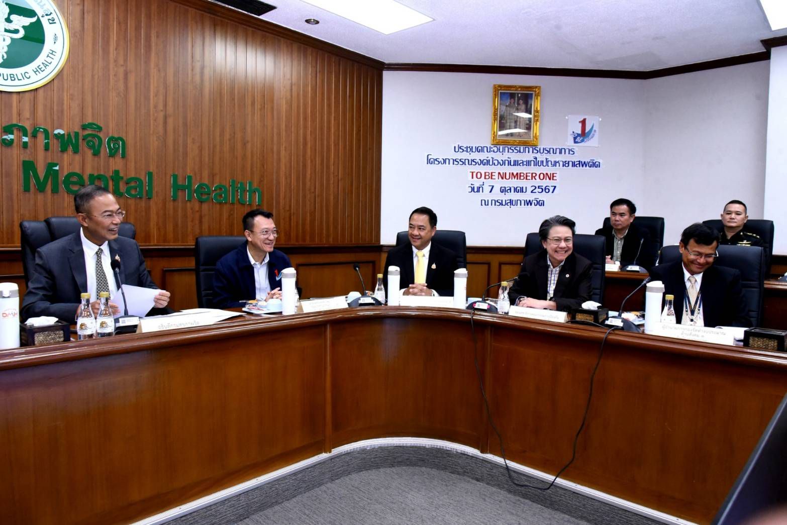 วันที่ 7 ตุลาคม 2567 นายบุญสงค์ ทัพชัยยุทธ์ ปลัดกระทรวงแรงงาน มอบหมายให้ นายสมาสภ์ ปัทมะสุคนธ์ ผู้ตรวจราชการกระทรวงแรงงาน ในฐานะคณะอนุกรรมการบูรณาการโครงการรณรงค์ป้องกันและแก้ไขปัญหายาเสพติด TO BE NUMBER ONE เข้าร่วมประชุมคณะอนุกรรมการบูรณาการโครงการรณรงค์ป้องกันและแก้ไขปัญหายาเสพติด TO BE NUMBER ONE โดยมี นพ. กิตติศักดิ์ อักษรวงศ์ อธิบดีกรมสุขภาพจิต เป็นประธาน พร้อมด้วยหม่อมหลวงยุพดี ศิริวรรณ เลขาธิการมูลนิธิ TO BE NUMBER ONE และที่ปรึกษาโครงการ TO BE NUMBER ONE เข้าร่วมประชุมด้วย ณ ห้องประชุมศาตราจารย์ นายแพทย์ฝน แสงสิงแก้ว อาคาร 1 ชั้น 1 กรมสุขภาพจิต
