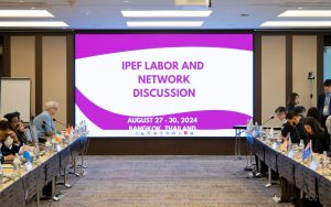 โดยที่ประชุมได้มีการอภิปรายเกี่ยวกับวาระของรัฐบาลร่วมและผู้มีส่วนได้ส่วนเสียด้านแรงงาน การอภิปรายมุ่งเน้นไปที่ผู้มีส่วนได้ส่วนเสียด้านแรงงาน การแบ่งปันความคิดเห็นเกี่ยวกับ IPEF ลำดับความสำคัญของการดำเนินการ และความต้องการในการสร้างขีดความสามารถกับรัฐบาล
