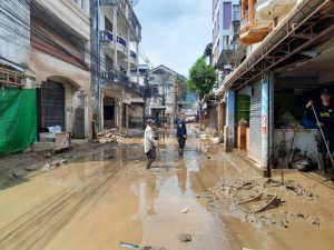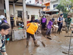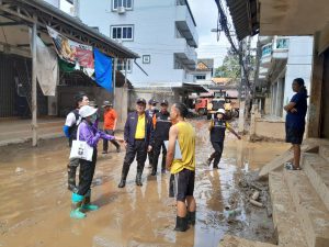 วันที่ 10 ตุลาคม 2567 กระทรวงแรงงาน โดยนายพิพัฒน์ รัชกิจประการ รัฐมนตรีว่าการกระทรวงแรงงาน มีความห่วงใยความเป็นอยู่ของผู้ประสบภัยจังหวัดเชียงราย นายบุญสงค์ ทัพชัยยุทธ์ ปลัดกระทรวงแรงงาน มอบหมายให้ นายสันติ นันตสุวรรณ ผู้ตรวจราชการกระทรวงแรงงาน ลงพื้นที่ครั้งที่ 2 ตรวจเยี่ยมการดำเนินโครงการแก้ไขปัญหาความเดือดร้อนด้านอาชีพของกระทรวงแรงงาน ร่วมกับเทศบาลตำบลแม่สาย และเทศบาลตำบลแม่สายมิตรภาพ ผู้ใหญ่บ้าน และชาวบ้านในชุมชน เพื่อชะล้างทำความสะอาดถนน อาคารบ้านเรือน คู คลองระบายน้ำ จำนวน 4 จุด ได้แก่ ชุมชนเกาะทราย ตลาดนัดสายลมจอย ชุมชนไม้ลุงขน และ ชุมชนเหมืองแดง ตำบลแม่สาย อำเภอแม่สาย จังหวัดเชียงราย ซึ่งโครงการดังกล่าวดำเนินการจ้างงานตั้งแต่วันที่ 9 – 13 ตุลาคม 2567 เพื่อให้การสัญจรได้รับความสะดวก ฟื้นฟูสภาพความเป็นอยู่ทำให้ประชาชนกลับมาประกอบอาชีพเป็นปกติโดยเร็วต่อไป