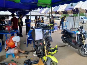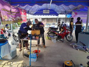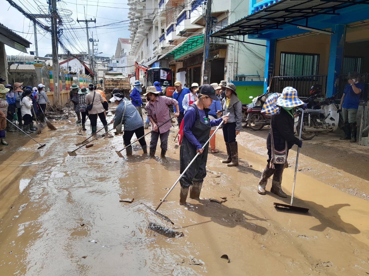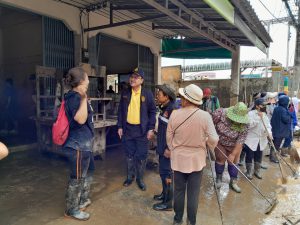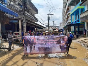 วันที่ 11 ตุลาคม 2567 กระทรวงแรงงาน โดย นายพิพัฒน์ รัชกิจประการ รัฐมนตรีว่าการกระทรวงแรงงาน มีความห่วงใยความเป็นอยู่ของผู้ประสบภัยจังหวัดเชียงราย นายบุญสงค์ ทัพชัยยุทธ์ ปลัดกระทรวงแรงงาน มอบหมายให้ นายสันติ นันตสุวรรณ ผู้ตรวจราชการกระทรวงแรงงาน ลงพื้นที่ครั้งที่ 3 ตรวจเยี่ยมการดำเนินโครงการแก้ไขปัญหาความเดือดร้อนด้านอาชีพของกระทรวงแรงงาน ร่วมกับเทศบาลตำบลแม่สาย เทศบาลตำบลแม่สายมิตรภาพ และ อบต.ป่าตึง ผู้ใหญ่บ้าน และชาวบ้านในชุมชน เพื่อชำระล้างทำความสะอาดถนน อาคารบ้านเรือน คู คลองระบายน้ำ จำนวน 4 จุด ได้แก่ ชุมชนเกาะทราย ตลาดนัดสายลมจอย ชุมชนไม้ลุงขน และ ชุมชนเหมืองแดง ตำบลแม่สาย อำเภอแม่สาย จังหวัดเชียงราย ซึ่งโครงการดำเนินการการจ้างงานตั้งแต่วันที่ 9 – 13 ตุลาคม 2567 เพื่อให้การสัญจรได้รับความสะดวก ฟื้นฟูสภาพความเป็นอยู่ทำให้ประชาชนกลับมาประกอบอาชีพเป็นปกติโดยเร็วต่อไป รวมทั้งตรวจเยี่ยมศูนย์ช่วยเหลือและเยียวยาผู้ประสบภัย พื้นที่ให้บริการ ซ่อมแซมระบบไฟฟ้า เครื่องใช้ไฟฟ้า เครื่องมือการเกษตรและยานยนต์ ฟรี ให้บริการโดย สถาบันพัฒนาฝีมือแรงงานนานาชาติ จังหวัดเชียงราย สถาบันพัฒนาฝีมือแรงงาน 20 เชียงราย และหน่วยงานสังกัด กรมพัฒนาฝีมือแรงงาน กระทรวงแรงงาน