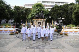 วันที่ 18 สิงหาคม 2567 เวลา 07.00 น. นายไพโรจน์ โชติกเสถียร ปลัดกระทรวงแรงงาน มอบหมายให้ นายสมพจน์ กวางแก้ว ผู้ตรวจราชการกระทรวงแรงงาน วางพุ่มดอกไม้ ถวายราชสักการะพระบรมราชานุสาวรีย์พระบาทสมเด็จพระปรเมนทรรามาธิบดีศรีสินทรมหามงกุฎ พระจอมเกล้าเจ้าอยู่หัวพระสยามเทวมหามงกุฎวิทยามหาราช รัชกาลที่ 4 “พระราชบิดาแห่งวิทยาศาสตร์ไทย” วันที่ 18 สิงหาคม 2567 เนื่องในโอกาส “วันวิทยาศาสตร์แห่งชาติ” ณ กระทรวงการอุดมศึกษา วิทยาศาสตร์ วิจัยและนวัตกรรม ถนนพระรามที่ 6 เขตราชเทวี กรุงเทพมหานคร