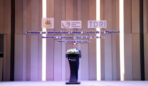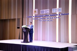 นายสมาสภ์ กล่าวต่อว่า กระทรวงแรงงานได้จัดงานสัมมนานี้ขึ้น เพื่อสร้างโอกาสและการรับรู้เกี่ยวกับ ILO อันจะต่อยอดไปสู่ความร่วมมือใหม่ ๆ ในอนาคต ซึ่งในนามกระทรวงแรงงาน ขอยืนยันว่า เรามีความพร้อมที่จะร่วมมือและผนึกกำลังอย่างขันแข็งกับทุกฝ่าย เพื่อเดินหน้าในการวางรากฐาน บรรทัดฐาน และมาตรฐานด้านแรงงาน ความยุติธรรมในสังคม ตลอดจนการสนับสนุน ผลักดัน และพัฒนานโยบายการเสริมสร้างสวัสดิภาพ รักษาสิทธิประโยชน์ และพัฒนาคุณภาพชีวิตของแรงงานทุกกลุ่มในประเทศไทยให้มีชีวิตที่ดียิ่งขึ้น ซึ่งขอขอบคุณ ILO สถาบัน TDRI ผู้เชี่ยวชาญจาก ILO ผู้แทนหน่วยงานภาครัฐที่เกี่ยวข้อง ผู้แทนองค์การนายจ้าง องค์การลูกจ้างทุกท่าน ที่ร่วมมือกันจัดให้มีการสัมมนา และหวังเป็นอย่างยิ่งว่าผลการสัมมนาในวันนี้จะเป็นประโยชน์ต่อการคุ้มครองแรงงานตามมาตรฐานแรงงานระหว่างประเทศต่อไป