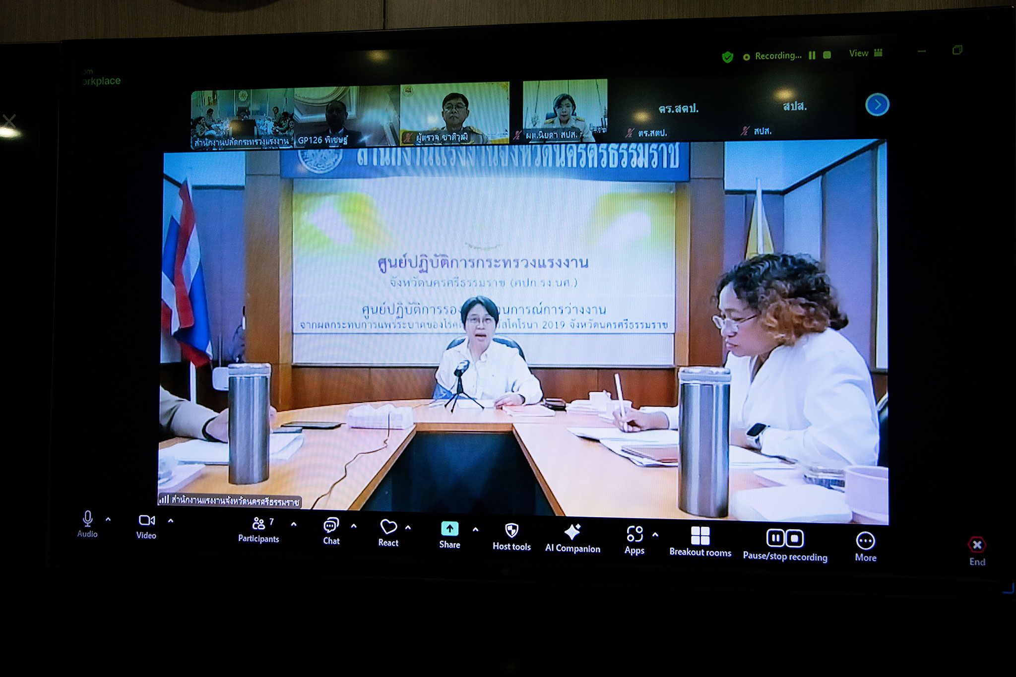วันที่ 10 กุมภาพันธ์ 2568 เวลา 13.30 น. นายบุญสงค์ ทัพชัยยุทธ์ ปลัดกระทรวงแรงงาน มอบหมายให้ นายพิเชษฐ์ ทองพันธ์ ผู้ตรวจราชการกระทรวงแรงงาน เป็นประธานการประชุมติดตามความก้าวหน้าการเตรียมความพร้อมก่อนการลงพื้นที่ในการประชุมคณะรัฐมนตรี (ครม.) อย่างเป็นทางการนอกสถานที่ ครั้งที่ 1/2568 ณ จังหวัดสงขลา และจังหวัดนครศรีธรรมราช ผ่านระบบการประชุมอิเล็คทรอนิกส์ (Zoom Meetings) โดยมี หน่วยงานที่เกี่ยวข้องเข้าร่วมประชุม ณ ห้องประชุมแสงสิงแก้ว ชั้น 5 อาคารกระทรวงแรงงาน โดยที่ประชุมได้มีการพิจารณา มอบหมายหน่วยงานที่เกี่ยวข้อง เตรียมการด้านข้อมูลและการอำนวยความสะดวกในการลงพื้นที่ระหว่างวันที่ 16 – 18 กุมภาพันธ์ 2568