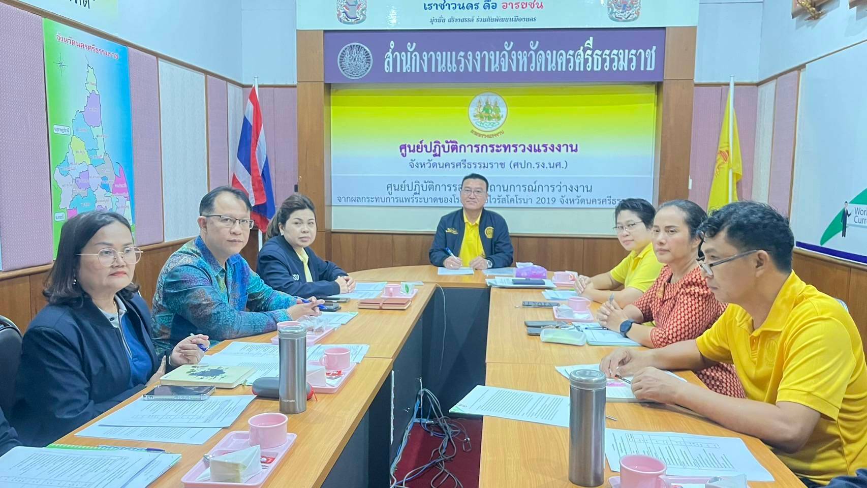 วันที่ 12 ธันวาคม 2567 นายบุญสงค์ ทัพชัยยุทธ์ ปลัดกระทรวงแรงงาน มอบหมายให้ นายสันติ นันตสุวรรณ ผู้ตรวจราชการกระทรวงแรงงาน เป็นประธานการประชุมร่วมกับหัวหน้าส่วนราชการสังกัดกระทรวงแรงงานจังหวัดนครศรีธรรมราช เพื่อเตรียมความพร้อมการตรวจติดตามการดำเนินงานตามนโยบายรัฐบาลด้านแรงงานของนายพิพัฒน์ รัชกิจประการ รัฐมนตรีว่าการกระทรวงแรงงาน ณ ศูนย์ปฏิบัติการกระทรวงแรงงานจังหวัดนครศรีธรรมราช สำนักงานแรงงานจังหวัดนครศรีธรรมราช