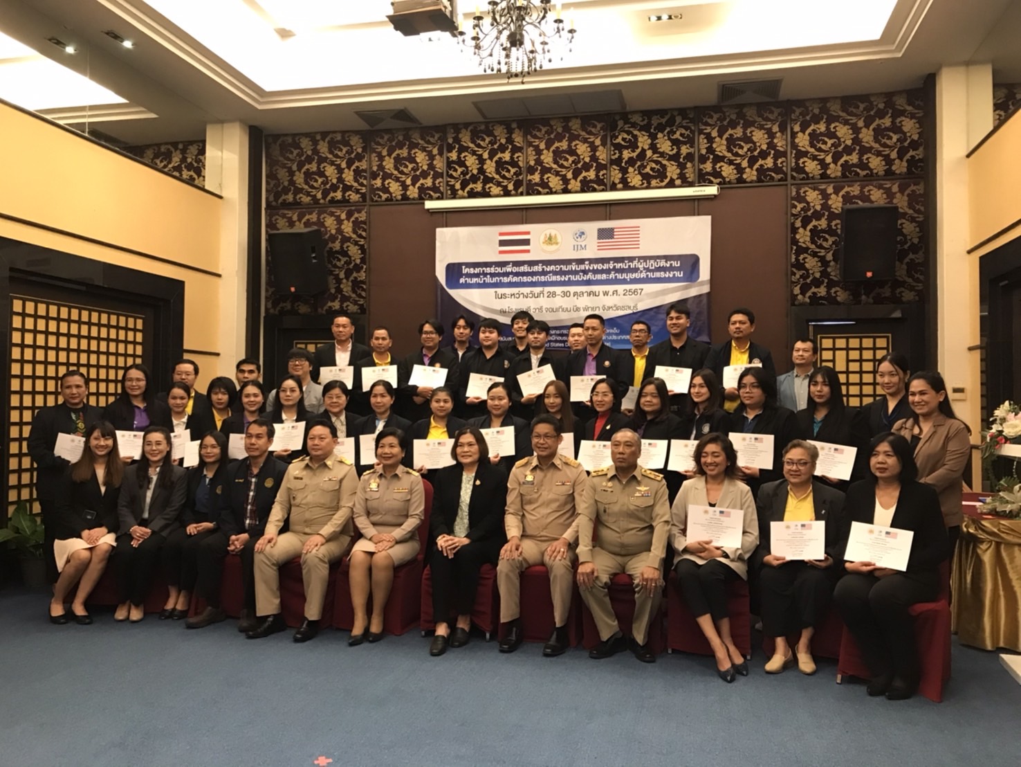สำหรับโครงการดังกล่าวจัดขึ้นภายใต้ความร่วมมือระหว่างกระทรวงแรงงานและมูลนิธิไอเจเอ็ม (International Justice Mission: IJM) เพื่อเสริมสร้างความเข้มแข็งและความพร้อมของเจ้าหน้าที่ในหน่วยงานด่านหน้า (First Responders) ในการคัดกรองและคัดแยกกรณีแรงงานบังคับและการค้ามนุษย์ด้านแรงงาน ให้เจ้าหน้าที่สามารถปฏิบัติงานและส่งต่อรายกรณีได้อย่างมีประสิทธิภาพและมีมาตรฐาน ยึดผู้เสียหายเป็นศูนย์กลาง และคำนึงถึงบาดแผลทางจิตใจของบุคคล รวมถึงสร้างทักษะการคัดกรองและคัดแยกผู้เสียหายที่คำนึงถึงบาดแผลทางจิตใจ โดยผู้เข้าร่วมโครงการฯ เป็นเจ้าหน้าที่สังกัดกระทรวงแรงงานทั้งส่วนกลางและส่วนภูมิภาค จำนวน 34 คน ได้รับการฝึกอบรมทั้งด้านทฤษฎีและปฏิบัติในองค์ความรู้ที่เกี่ยวข้องตลอดระยะเวลา 3 วัน ระหว่างวันที่ 28 – 30 ตุลาคม 2567