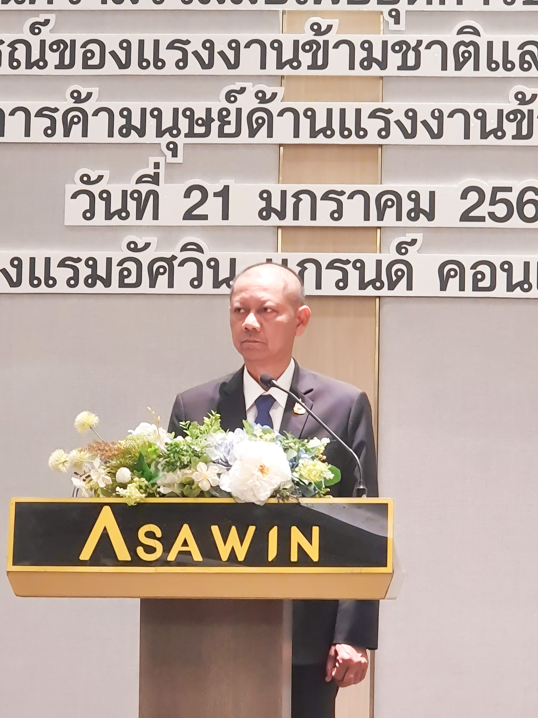 วันที่ 21 มกราคม 2568 นายบุญสงค์ ทัพชัยยุทธ์ ปลัดกระทรวงแรงงาน มอบหมายให้ นายพิเชษฐ์ ทองพันธ์ ผู้ตรวจราชการกระทรวงแรงงาน เป็นประธานในพิธีเปิดตัวการศึกษาวิจัย ภายใต้กรอบแนวคิดการประสานความร่วมมือเพื่อยุติการบังคับใช้แรงงานข้ามชาติ และการตอบสนองของระบบยุติธรรมต่อการค้ามนุษย์ด้านแรงงานข้ามพรมแดนในประเทศไทย โดยมี นางจตุพร แสงหิรัญ อธิบดีอัยการสำนักคดีค้ามนุษย์ นายอังเดรย์ ซอเช็งโก (Mr. Andrey Sawchenko) รองประธานมูลนิธิไอเจเอ็มระดับภูมิภาคเอเชียแปซิฟิก (Regional Vice President, IJM Asia Pacific) นายแอนดรูว์ วสุวงศ์ (Mr. Andrew Wasuwongse) ผู้อำนวยการมูลนิธิไอเจเอ็มประเทศไทย (Country Director, IJM Foundation Thailand) ผู้แทนจากสถานทูต เป็นผู้กล่าวรายงาน และหน่วยงานภาคีเครือข่าย ร่วมเป็นเกียรติ ณ ห้องประชุมพระวิษณุ ชั้น 3 โรงแรมอัศวิน แกรนด์ คอนเวนชั่น ถนนวิภาวดีรังสิต เขตหลักสี่ กรุงเทพมหานคร การประชุมครั้งนี้เพื่อสะท้อนถึงปัญหาและข้อท้าทายจากสถานการณ์ที่เกิดขึ้นจริง อีกทั้งเป็นการรวบรวมความสำเร็จและความคืบหน้าของประเทศไทยในการดำเนินงานตามนโยบายและมาตรการป้องกันและปราบปรามการค้ามนุษย์ ซึ่งเป็นข้อพิสูจน์ถึงความพยายามในการแก้ปัญหาดังกล่าวอย่างบูรณาการร่วมกันของทีมประเทศไทย ซึ่งมีผู้เข้าร่วมงาน รวมทั้งสิ้น จำนวน 120 คน