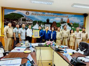 ในการนี้ ผู้ตรวจราชการกระทรวงแรงงาน ยังได้ร่วมมอบป้ายเครื่องหมายมาตรฐานฝีมือแรงงานให้แก่ บริษัท โรบินสัน จำกัด(มหาชน) สาขากาญจนบุรี ณ สถาบันพัฒนาฝีมือแรงงาน 34 กาญจนบุรี ด้วย