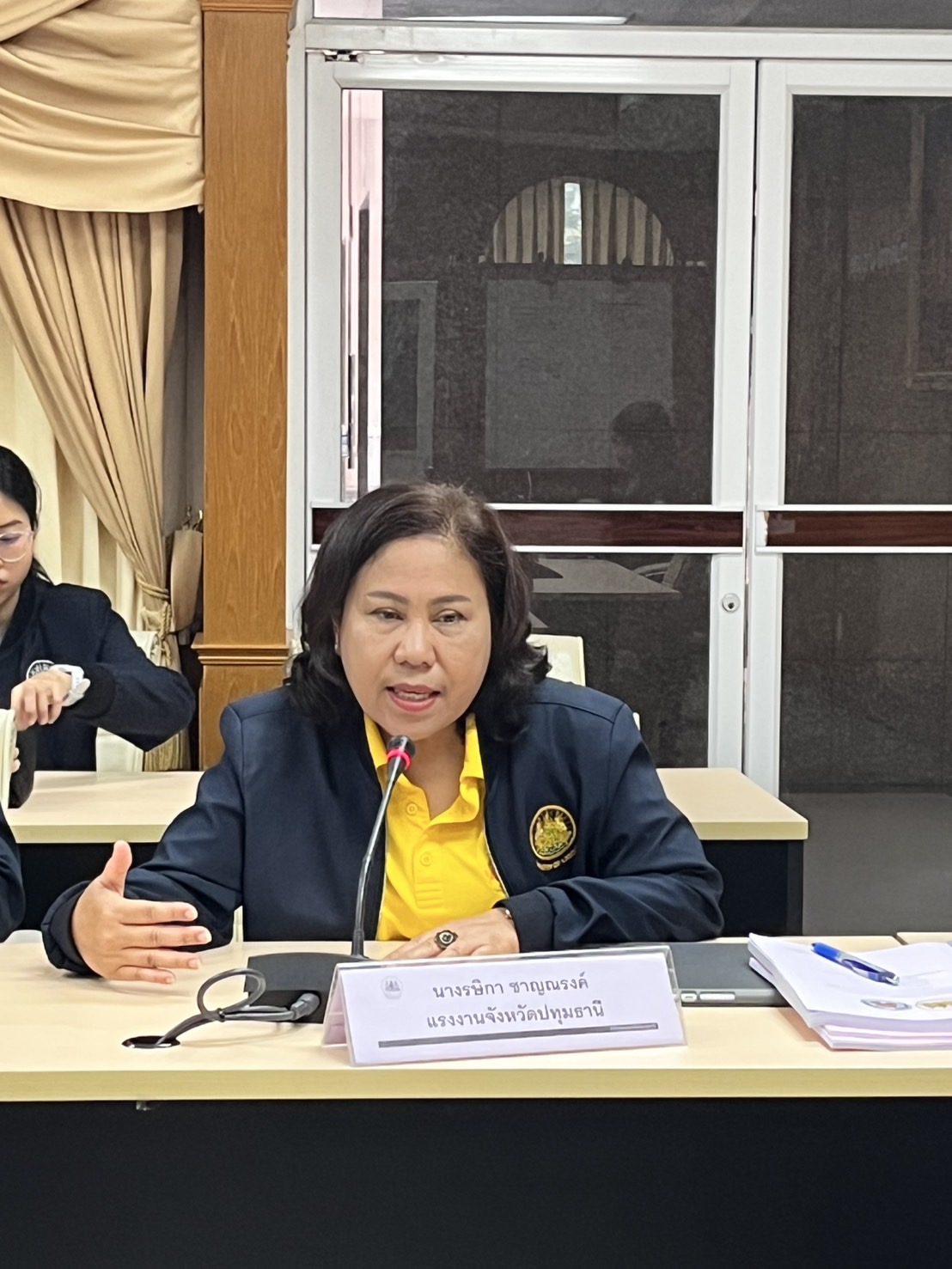 วันที่ 8 กรกฎาคม 2568 นายบุญสงค์ ทัพชัยยุทธ์ ปลัดกระทรวงแรงงาน มอบหมายให้ นางสาวกาญจนา พูลแก้ว ผู้ตรวจราชการกระทรวงแรงงาน พร้อมด้วย นางวันทนา ณัฐพูลวัฒน์ ผู้ตรวจราชการสำนักงานประกันสังคม และนายเจษฎา จันทร์อุไร ผู้ตรวจราชการกรมพัฒนาฝีมือแรงงาน ลงพื้นที่จังหวัดปทุมธานี ประชุมหัวหน้าส่วนราชการในสังกัดกระทรวงแรงงาน เพื่อตรวจติดตามและประเมินผลการปฏิบัติงานตามแผนการตรวจราชการของผู้ตรวจราชการกระทรวงแรงงาน ประจำปีงบประมาณ พ.ศ. 2568 รอบที่ 3 (Monitoring/Evaluation) ณ ห้องประชุมราชสีห์บัวหลวง ชั้น 3 ศาลากลางจังหวัดปทุมธานี พร้อมเยี่ยมคาวระ และหารือข้อราชการด้านแรงงานกับนายคมสัน ญาณวัฒนา รองผู้ว่าราชการจังหวัดปทุมธานี ณ ห้องรับรองผู้ว่าราชการจังหวัด ชั้น 2 ศาลากลางจังหวัดปทุมธานี