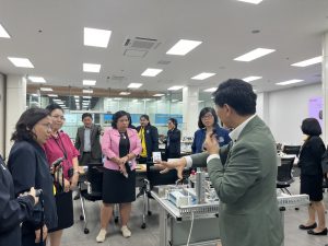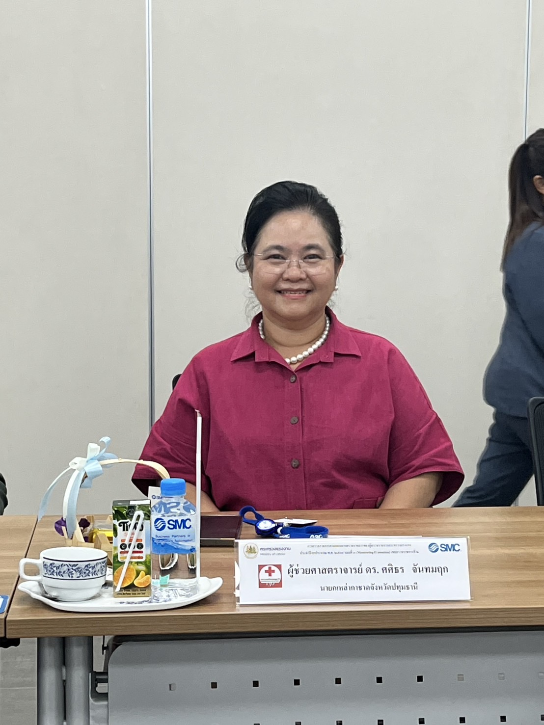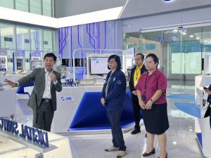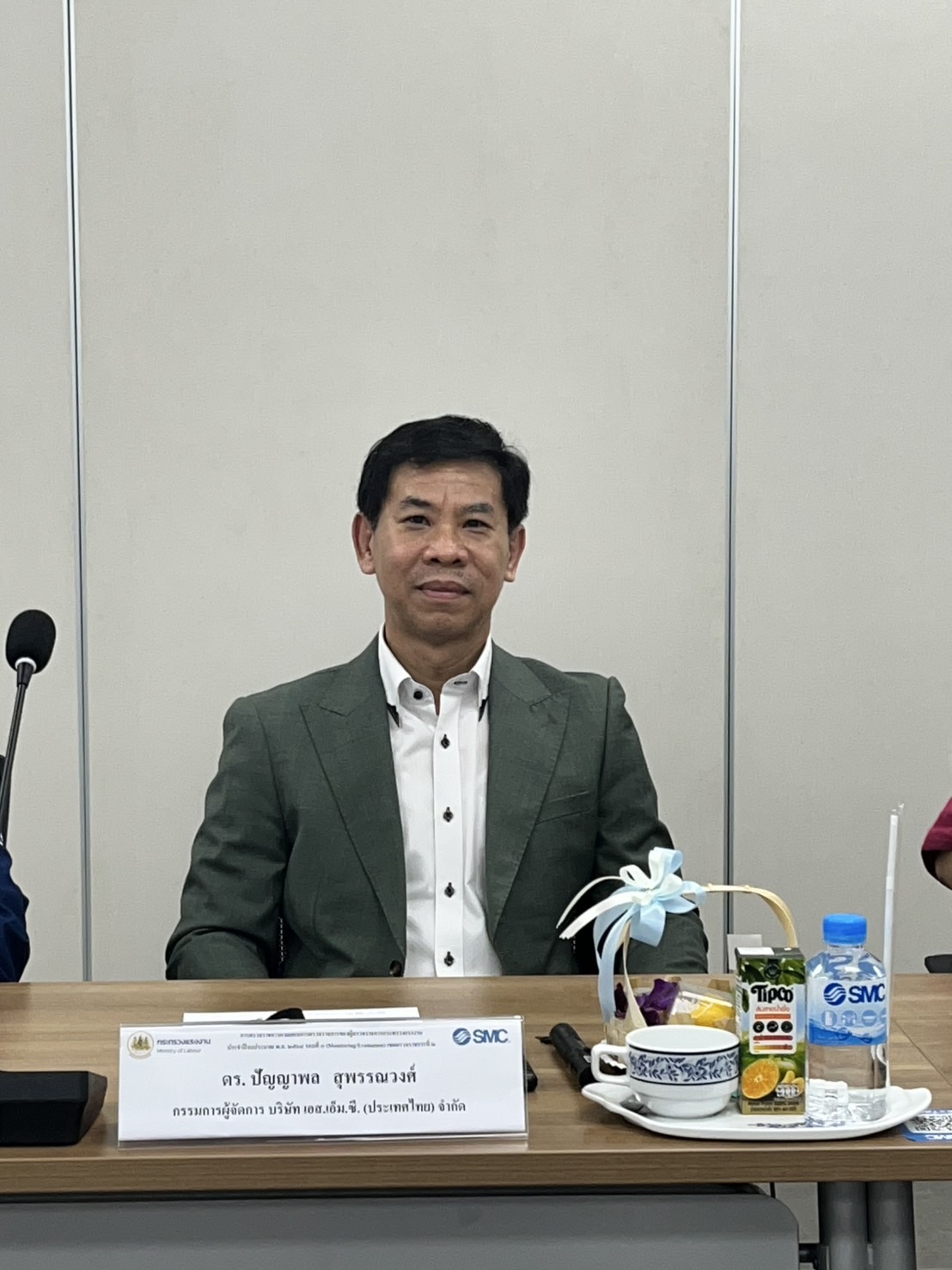 โดยในช่วงบ่าย ผู้ตรวจราชการกระทรวงแรงงาน และคณะ ยังได้ร่วมประชุมเพื่อรับฟังข้อมูลเกี่ยวกับความร่วมมือระหว่างภาครัฐและภาคเอกชนของการพัฒนากำลังแรงงานในจังหวัดปทุมธานี ณ ห้องประชุมสวนอุตสาหกรรมบางกระดี ตำบลบางกะดี อำเภอเมืองปทุมธานี จังหวัดปทุมธานี และตรวจเยี่ยมสถานประกอบการ ณ บริษัท เอส.เอ็ม.ซี (ประเทศไทย) จำกัด” ตั้งอยู่ที่ หมู่ 5 ถนนติวานนท์ ตำบลบางกะดี อำเภอเมืองปทุมธานี จังหวัดปทุมธานี ซึ่งจำหน่ายอุปกรณ์ควบคุมอัตโนมัติภาคอุตสาหกรรม การผลิตเครื่องจักรอื่นๆ ที่ใช้งานทั่วไป หลังจากนั้น ยังได้ตรวจเยี่ยม ศูนย์บริการร่วมกระทรวงแรงงาน จังหวัดปทุมธานี ณ ห้างสรรพสินค้าบิ๊กซี ตำบลคลองหนึ่ง อำเภอคลองหลวง จังหวัดปทุมธานี ด้วย