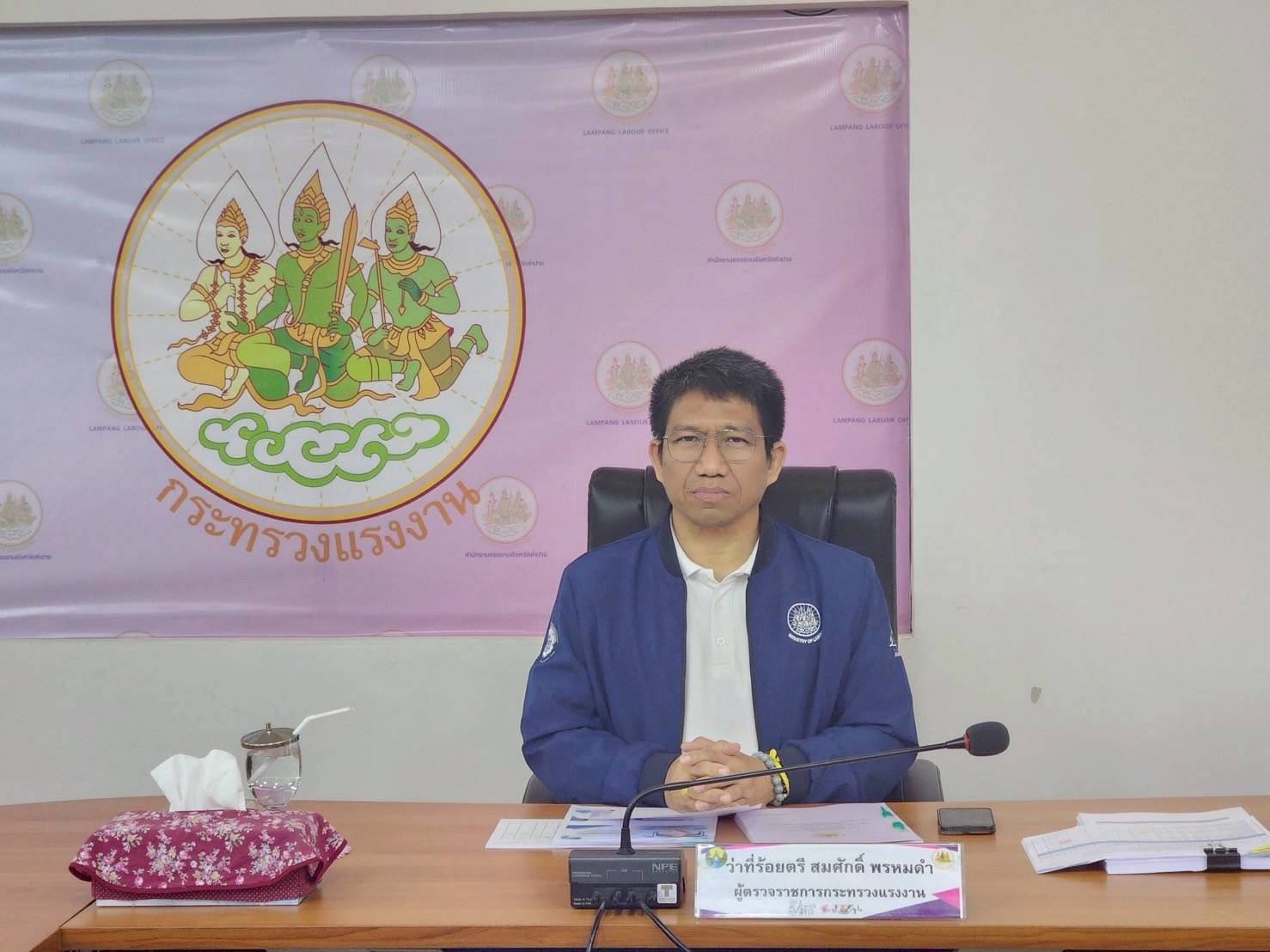 วันที่ 23 กรกฎาคม 2568 นายบุญสงค์ ทัพชัยยุทธ์ ปลัดกระทรวงแรงงาน มอบหมายให้ ว่าที่ร้อยตรี สมศักดิ์ พรหมดำ ผู้ตรวจราชการกระทรวงแรงงาน พร้อมด้วยนายพูนทรัพย์ ศรีไพบูลย์ ผู้ตรวจราชการกรม สำนักงานประกันสังคม ลงพื้นที่จังหวัดลำพูน ประชุมสำนักงานแรงงาน และ ประชุมหัวหน้าส่วนราชการสังกัดกระทรวงแรงงานจังหวัดลำพูน เพื่อตรวจติดตามและประเมินผลการปฏิบัติงานตามแผนการตรวจราชการสำนักงานปลัดกระทรวงแรงงาน ประจำปีงบประมาณ พ.ศ. 2568 รอบที่ 3 (Monitoring/Evaluation) พร้อมทั้ง ติดตามโครงการเพิ่มประสิทธิภาพการให้บริการด้านแรงงานของบัณฑิตแรงงานในพื้นที่ และพบปะพูดคุยร่วมกับหอการค้า สภาอุตสาหกรรม สภาอุตสาหกรรมท่องเที่ยว ณ ห้องประชุม 1 ชั้น 3B ศูนย์ราชการกระทรวงแรงงานจังหวัดลำพูน