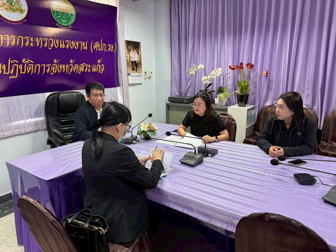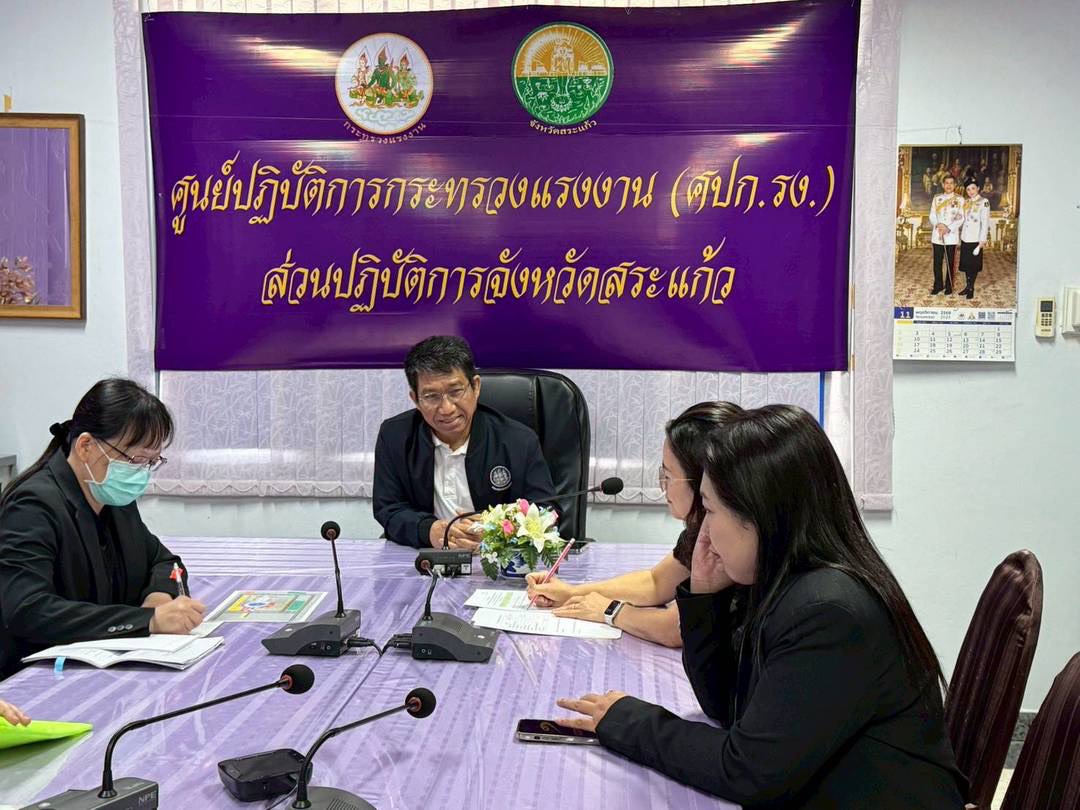 วันที่ 18 พฤศจิกายน 2568 พันตำรวจโท วรรณพงษ์ คชรักษ์ ปลัดกระทรวงแรงงาน มอบหมายให้ ว่าที่ร้อยตรีสมศักดิ์ พรหมดํา ผู้ตรวจราชการกระทรวงแรงงาน ร่วมติดตามโครงการมหกรรมยกระดับคุณภาพชีวิตแรงงานอิสระ เพื่อกระตุ้นเศรษฐกิจชุมชน พร้อมพบปะ และให้โอวาทแก่บุคลากรจังหวัดสระแก้ว โดยมีนางสาวปาริชาติ ประไพนพ แรงงานจังหวัดสระแก้ว ร่วมรับมอบ และนางสาวสุหัชชา กิติวินิต ผู้อำนวยการสำนักงานนโยบายแรงงานนอกระบบ ร่วมด้วย ณ ห้องประชุมสำนักงานแรงงานจังหวัดสระแก้ว ชั้น 2 ศาลากลางจังหวัดสระแก้ว