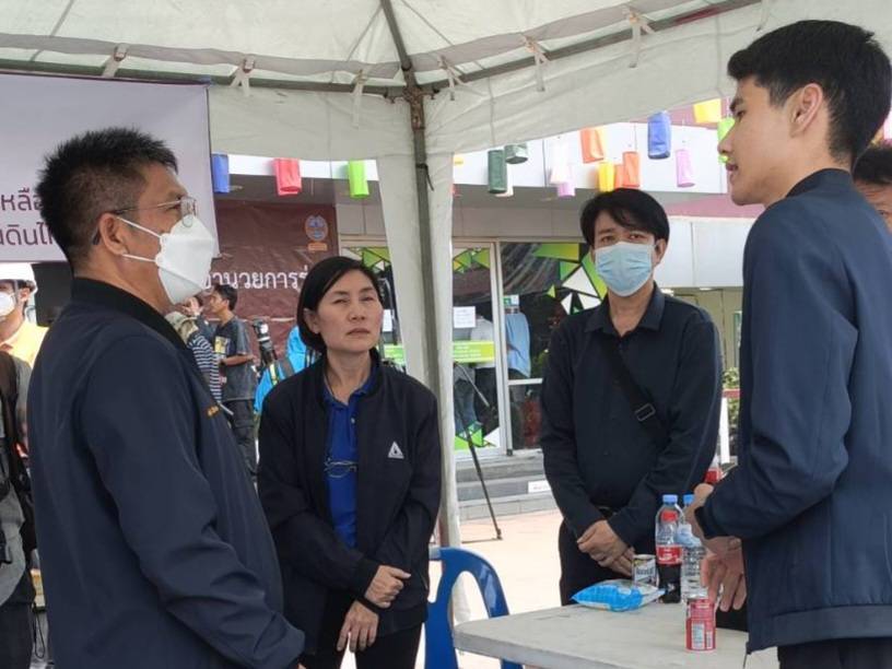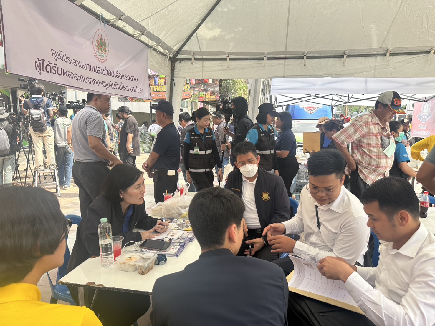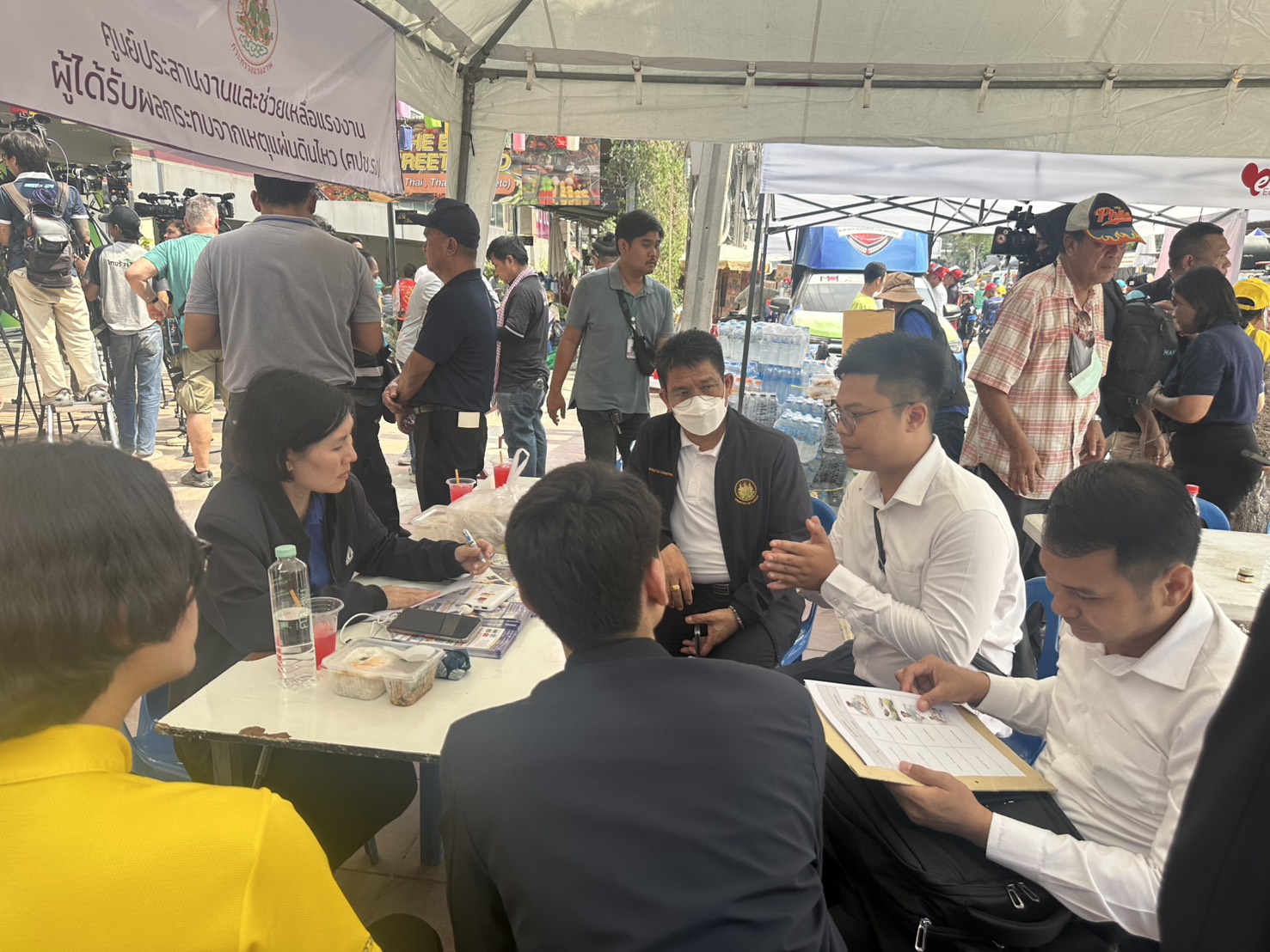 วันที่ 1 เมษายน 2568 เวลา 13.30 น. นายบุญสงค์ ทัพชัยยุทธ์ ปลัดกระทรวงแรงงาน มอบหมายให้ ว่าที่ร้อยตรี สมศักดิ์ พรหมดำ ผู้ตรวจราชการกระทรวงแรงงาน พร้อมด้วย ผู้บริหารและเจ้าหน้าที่ที่เกี่ยวข้อง ลงพื้นที่ตรวจเยี่ยม และติดตามการทำงานของเจ้าหน้าที่ ในศูนย์ประสานงานและช่วยเหลือแรงงาน ผู้ได้รับผลกระทบจากเหตุแผ่นดินไหว (ศปช.รง.) ณ พื้นที่กองอำนวยการร่วม อาคารสำนักงานตรวจเงินแผ่นดิน (หลังใหม่) โดยภายในศูนย์ฯ ได้บูรณาการความร่วมมือจากหน่วยงานในสังกัดกระทรวงแรงงาน ได้แก่ กรมสวัสดิการและคุ้มครองแรงงาน ให้คำปรึกษาเรื่องสิทธิแรงงาน ค่าจ้างคงค้าง ค่าชดเชย และสวัสดิการต่าง ๆ สำนักงานประกันสังคม ตรวจสอบสิทธิและให้บริการรับเรื่องขอรับเงินเยียวยาแก่ผู้ประกันตน กรมการจัดหางาน ช่วยประสานงานบริษัทประกันภัย พร้อมประสานประเทศต้นทางกรณีแรงงานต่างชาติ พร้อมกันนี้ กระทรวงแรงงานได้จัดเตรียมล่ามภาษาพม่าและกัมพูชา ประจำศูนย์ตลอดเวลา เพื่อให้แรงงานต่างชาติสามารถเข้าถึงข้อมูลได้อย่างเข้าใจและถูกต้อง