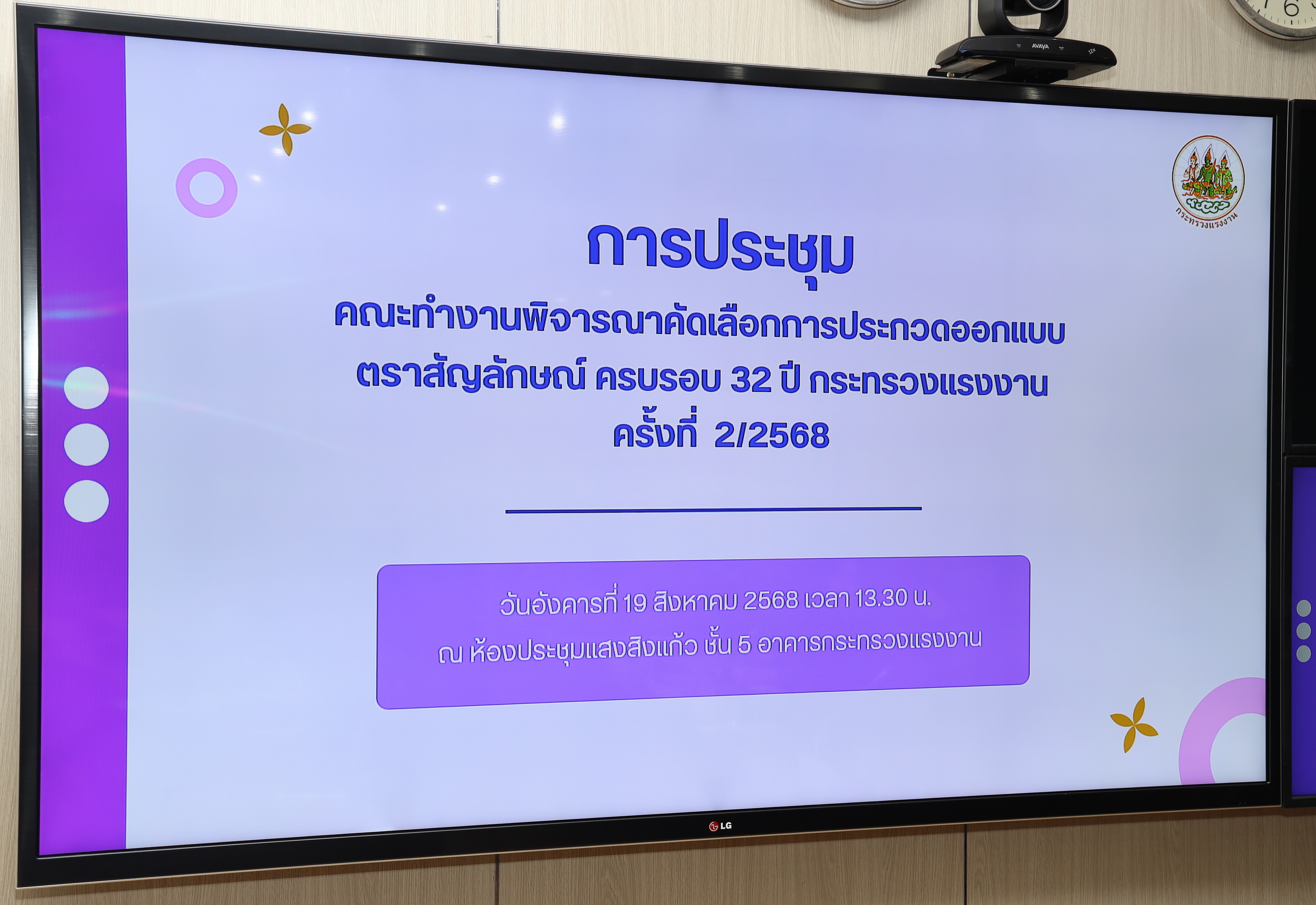 วันที่ 19 สิงหาคม 2568 เวลา 13.30 น. นายบุญสงค์ ทัพชัยยุทธ์ ปลัดกระทรวงแรงงาน มอบหมายให้ นางสาวจีระภา บุญรัตน์ ผู้ตรวจราชการกระทรวงแรงงาน เป็นประธานการประชุมคณะทำงานพิจารณาคัดเลือกการประกวดออกแบบตราสัญลักษณ์ ครบรอบ 32 ปี กระทรวงแรงงาน ครั้งที่ 2/2568 โดยมี นายศักดินาถ สนธิศักดิ์โยธิน ผู้ช่วยปลัดกระทรวงแรงงาน ผู้บริหารกระทรวงแรงงาน และเจ้าหน้าที่ เข้าร่วมการประชุม ณ ห้องประชุมแสงสิงแก้ว ชั้น 5 อาคารกระทรวงแรงงาน