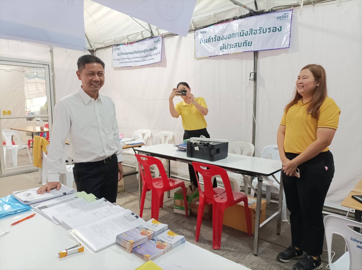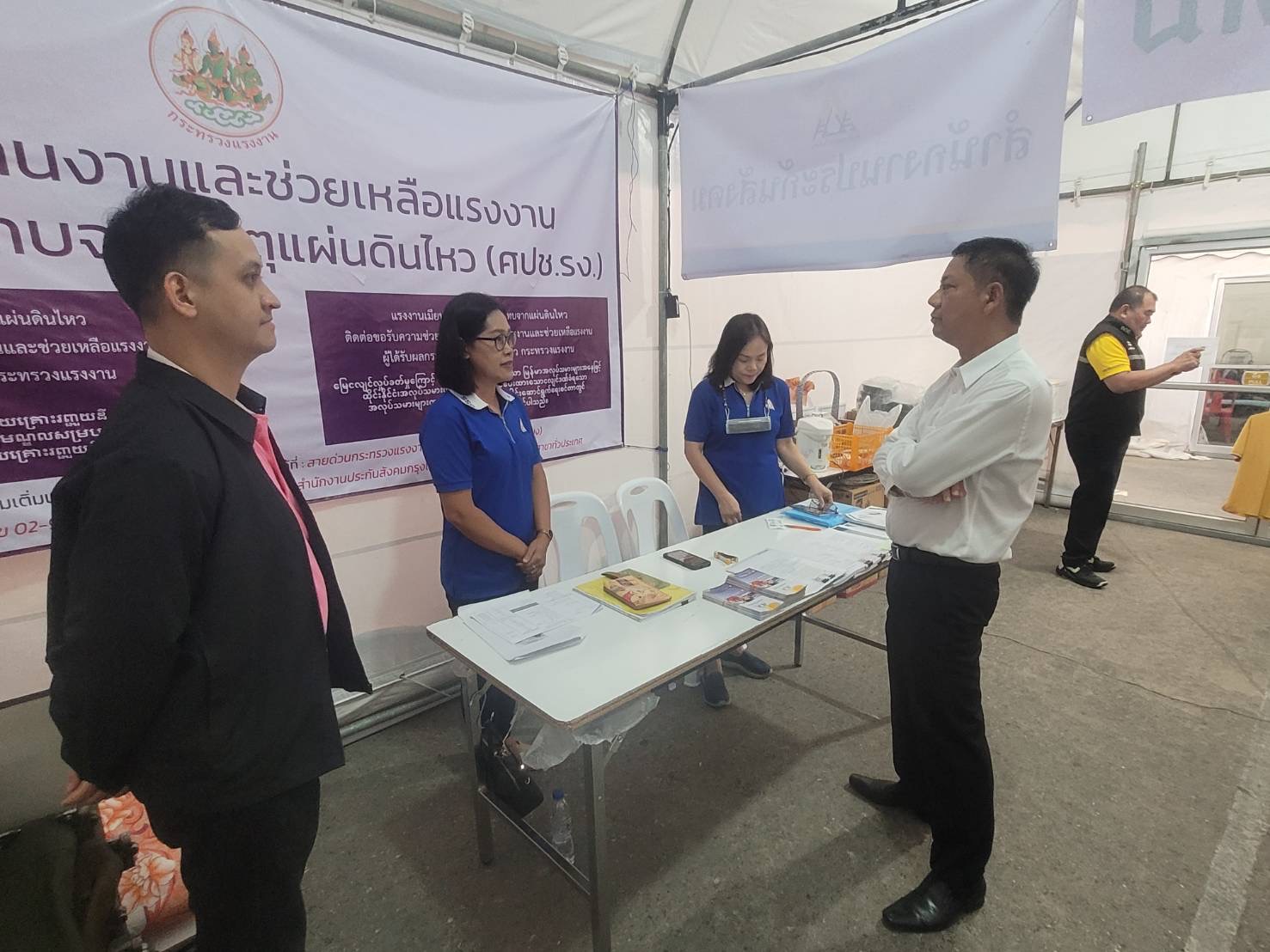 วันที่ 3 พฤษภาคม 2568 เวลา 14.30 น. นายบุญสงค์ ทัพชัยยุทธ์ ปลัดกระทรวงแรงงาน มอบหมายให้ นายพิเชษฐ์ ทองพันธ์ ผู้ตรวจราชการกระทรวงแรงงาน ลงพื้นที่เยี่ยมให้กำลังใจเจ้าหน้าที่ผู้ปฏิบัติงาน เพื่อสร้างขวัญกำลังใจ และติดตามการให้ความช่วยเหลือด้านสิทธิประโยชน์แรงงาน บริเวณศูนย์ประสานงานและช่วยเหลือแรงงาน ผู้ได้รับผลกระทบจากเหตุแผ่นดินไหว (ศปช.รง.) และจุดรับแจ้งสิทธิประโยชน์ประกันสังคมผู้ได้รับผลกระทบจากเหตุโครงสร้างอาคารของโครงการก่อสร้างอาคารสำนักงานการตรวจเงินแผ่นดิน ถนนกำแพงเพชร 2 เขตจตุจักร กรุงเทพมหานคร ณ เต็นท์สำนักงานเขตจตุจักร กรุงเทพมหานคร ด้านข้างศูนย์การค้าเจเจมอลล์