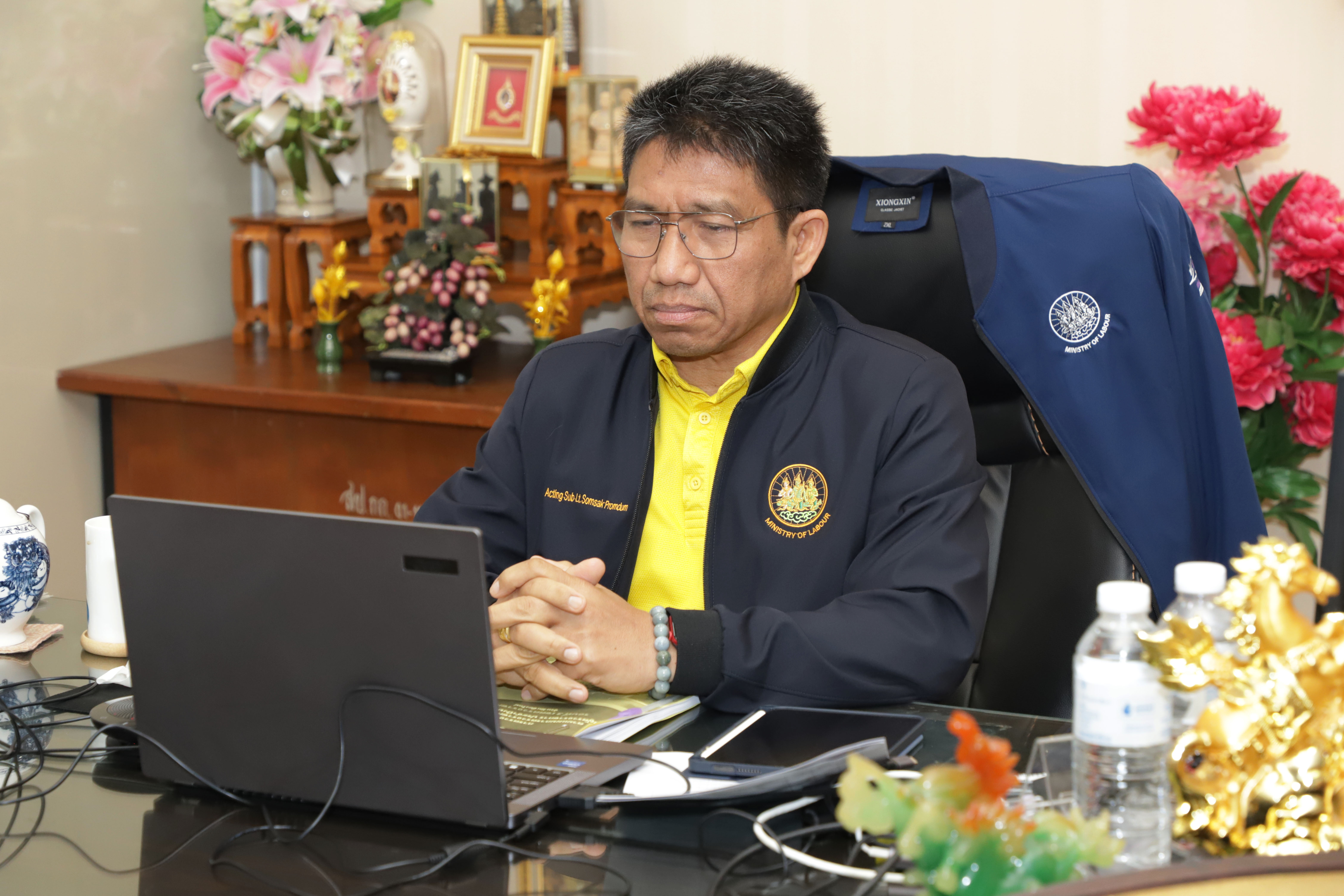 วันที่ 31 กรกฎาคม 2568 เวลา 09.30 น. นายบุญสงค์ ทัพชัยยุทธ์ ปลัดกระทรวงแรงงาน มอบหมายให้ ว่าที่ร้อยตรี สมศักดิ์ พรหมดำ ผู้ตรวจราชการกระทรวงแรงงาน เข้าร่วมประชุมตรวจราชการตามแผนการตรวจราชการแบบบูรณาการ ของคณะผู้ตรวจราชการกระทรวง ตรวจราชการที่ 15 ประจำปีงบประมาณ พ.ศ. 2568 รอบที่ 3 ผ่านสื่ออิเล็กทรอนิกส์ ณ ห้องผู้ตรวจราชการกระทรวงแรงงาน ชั้น 8 อาคารกระทรวงแรงงาน