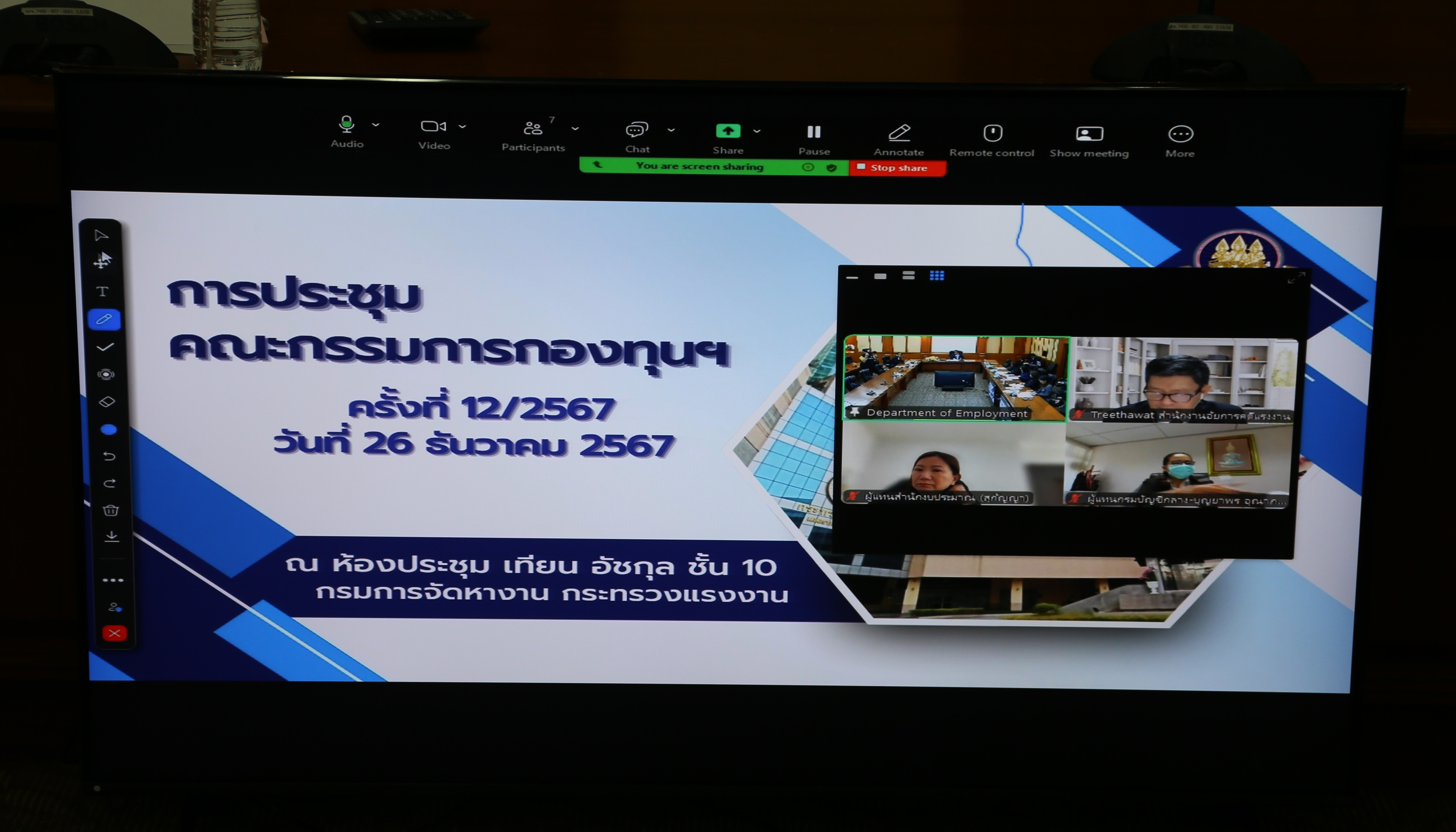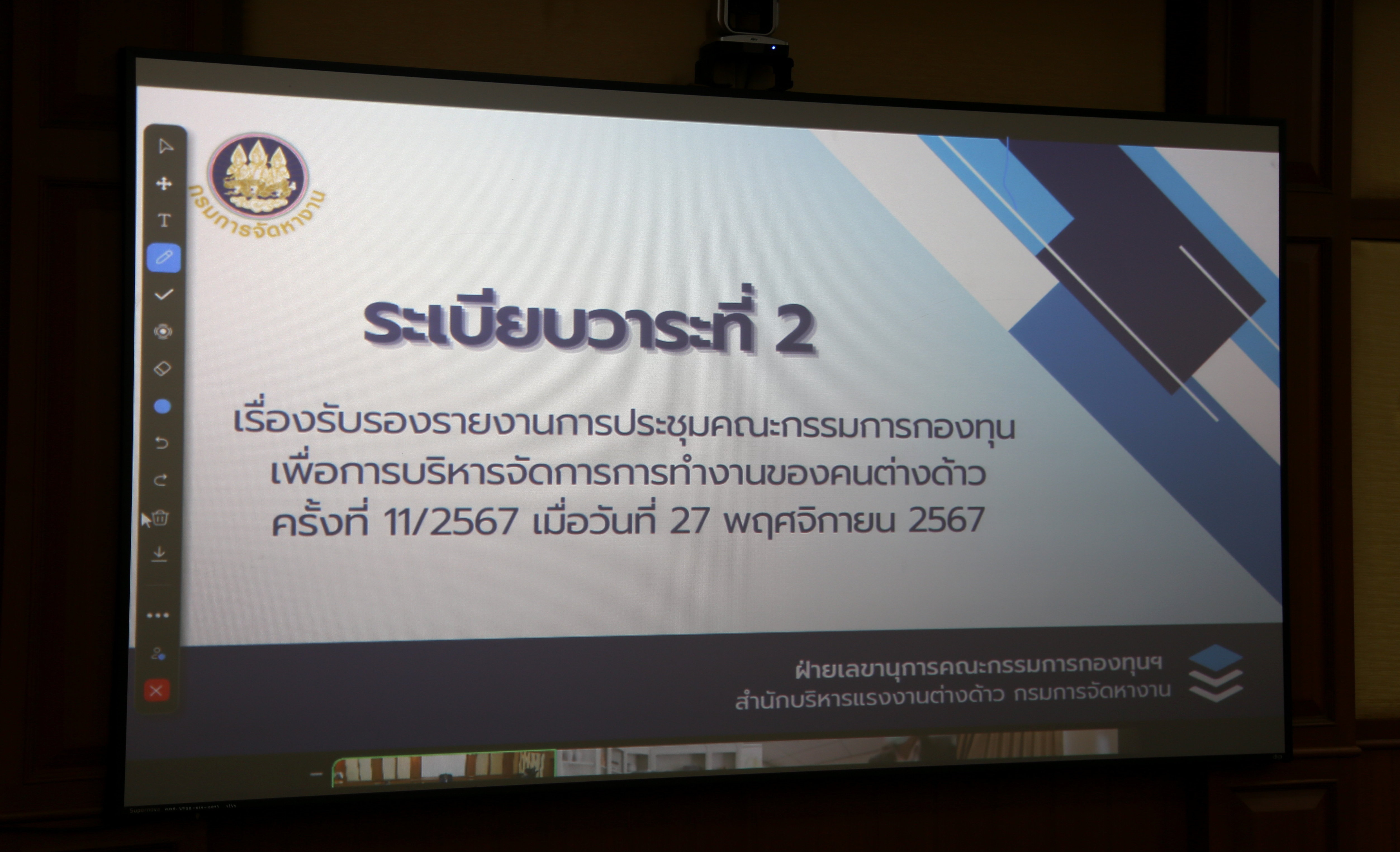 วันที่ 26 ธันวาคม 2567 เวลา 10.00 น. นายบุญสงค์ ทัพชัยยุทธ์ ปลัดกระทรวงแรงงาน มอบหมายให้ นายสมาสภ์ ปัทมะสุคนธ์ รองปลัดกระทรวงแรงงาน เป็นประธานการประชุมคณะกรรมการกองทุนเพื่อการบริหารจัดการการทำงานของคนต่างด้าว ครั้งที่ 12/2567 ณ ห้องประชุมเทียน อัชกุล ชั้น 10 กรมการจัดหางาน อาคารกระทรวงแรงงาน