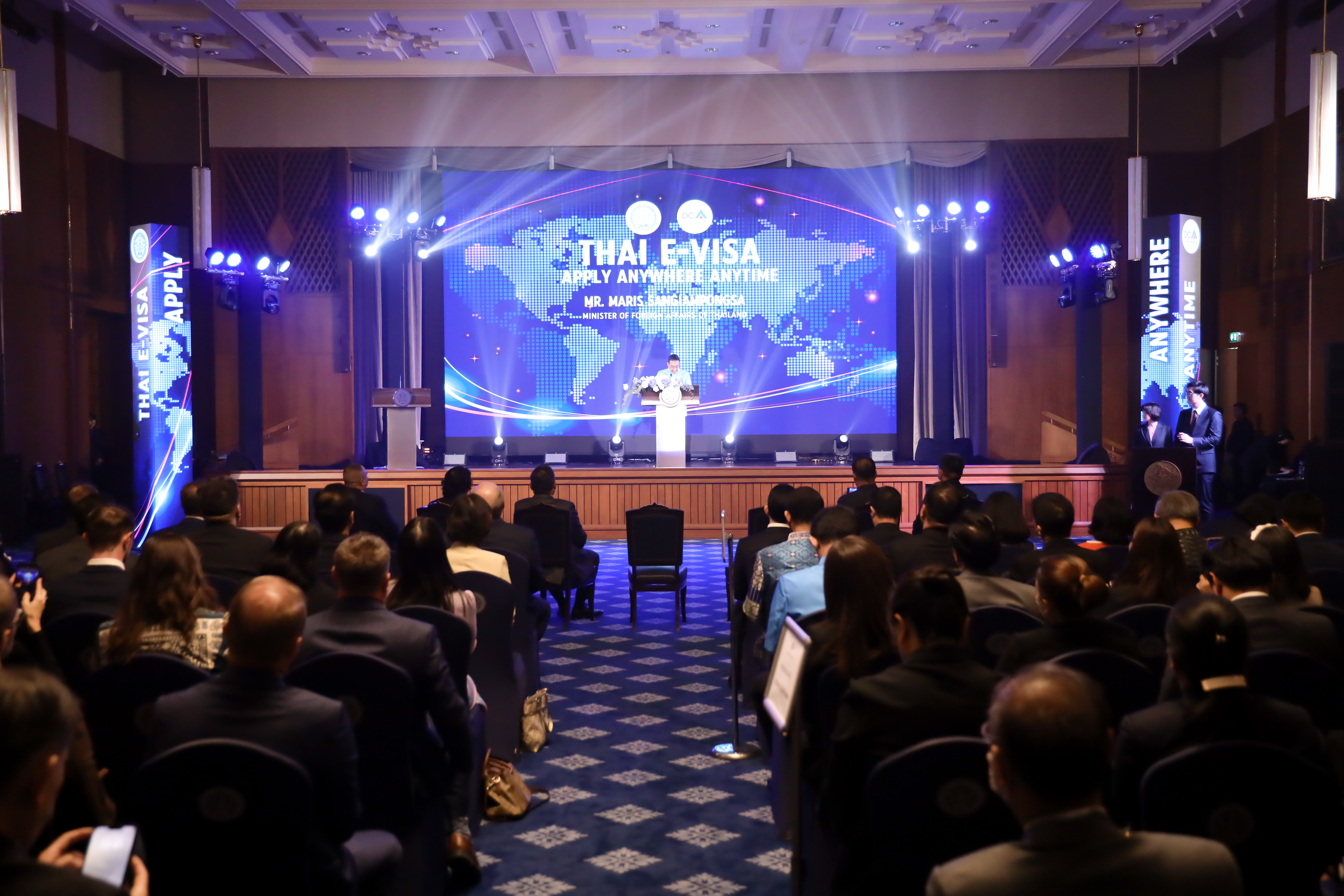 โดยการจัดงานครั้งนี้ เนื่องในโอกาสที่กระทรวงการต่างประเทศจะเปิดใช้งานระบบตรวจลงตราอิเล็กทรอนิกส์ (E-VISA)ครอบคลุมสถานเอกอัครราชทูตและสถานกงสุลใหญ่ทุกแห่งทั่วโลก ซึ่งนับเป็นหมุดหมายสำคัญของประเทศ และตอบสนองนโยบายรัฐบาลในการสนับสนุนเศรษฐกิจด้วยการส่งเสริมการเดินทางเข้าราชอาณาจักรของคนต่างชาติและการประกาศวิสัยทัศน์ “Thailand Vision “IGNITE THAILปลัดกระทรวงแรงงาน มอบ รองปลัดกระทรวงแรงงาน ร่วมงาน Kick- Off THAI E-VISA