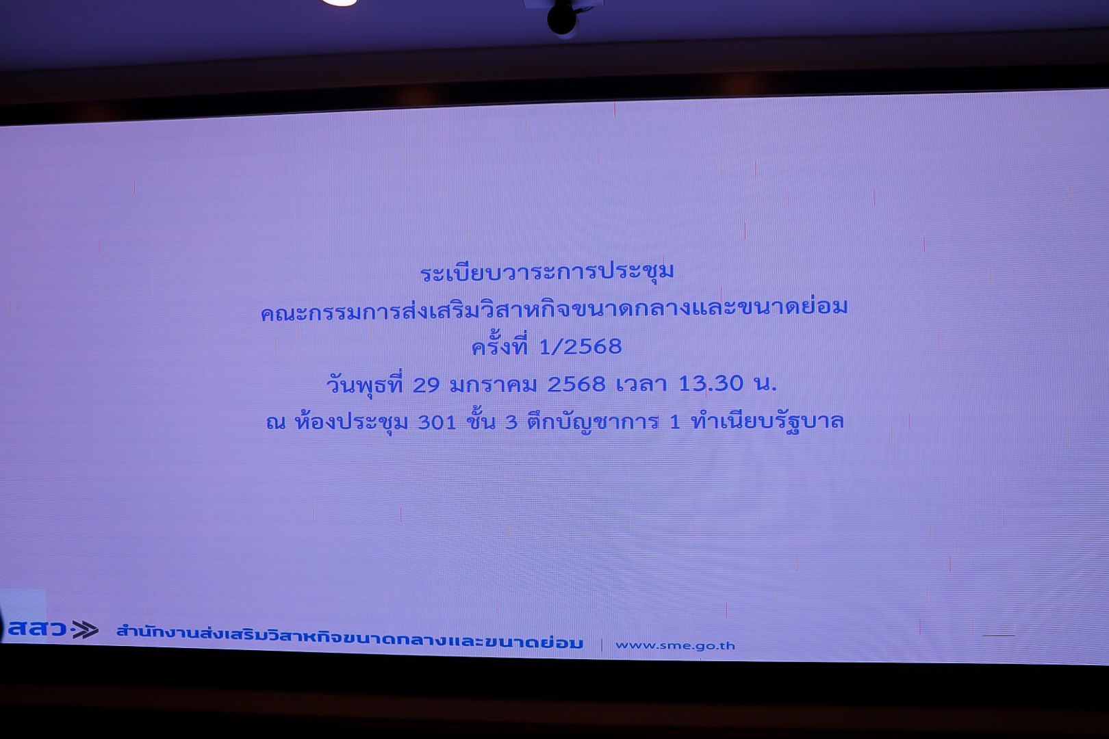 วันที่ 29 มกราคม 2568 เวลา 13.30 น. นายบุญสงค์ ทัพชัยยุทธ์ ปลัดกระทรวงแรงงาน มอบหมายให้ นายสมาสภ์ ปัทมะสุคนธ์ รองปลัดกระทรวงแรงงาน ร่วมประชุมคณะกรรมการส่งเสริมวิสาหกิจขนาดกลางและขนาดย่อม ครั้งที่ 1/2568 โดยมี นายประเสริฐ จันทรรวงทอง รองนายกรัฐมนตรี เป็นประธาน หน่วยงานที่เกี่ยวข้องเข้าร่วมประชุม ณ ห้องประชุม 301 ชั้น 3 ตึกบัญชาการ 1 ทำเนียบรัฐบาล กรุงเทพมหานคร สำหรับการประชุมดังกล่าวที่ประชุมได้รับทราบรายงานสถานการณ์ MSME เดือนธันวาคม 2567 รายงานผลการดำเนินงานสำนักงานส่งเสริมวิสาหกิจขนาดกลางและขนาดย่อม ประจำปีงบประมาณ 2567 และรายงานผลการดำเนินงานตามแผนปฏิบัติการส่งเสริม SME พ.ศ.2567 และที่ประชุมได้พิจารณาแต่งตังคณะกรรมการบริหารสำนักงานงเสริมวิสาหกิจขนาดกลางและขนาดย่
