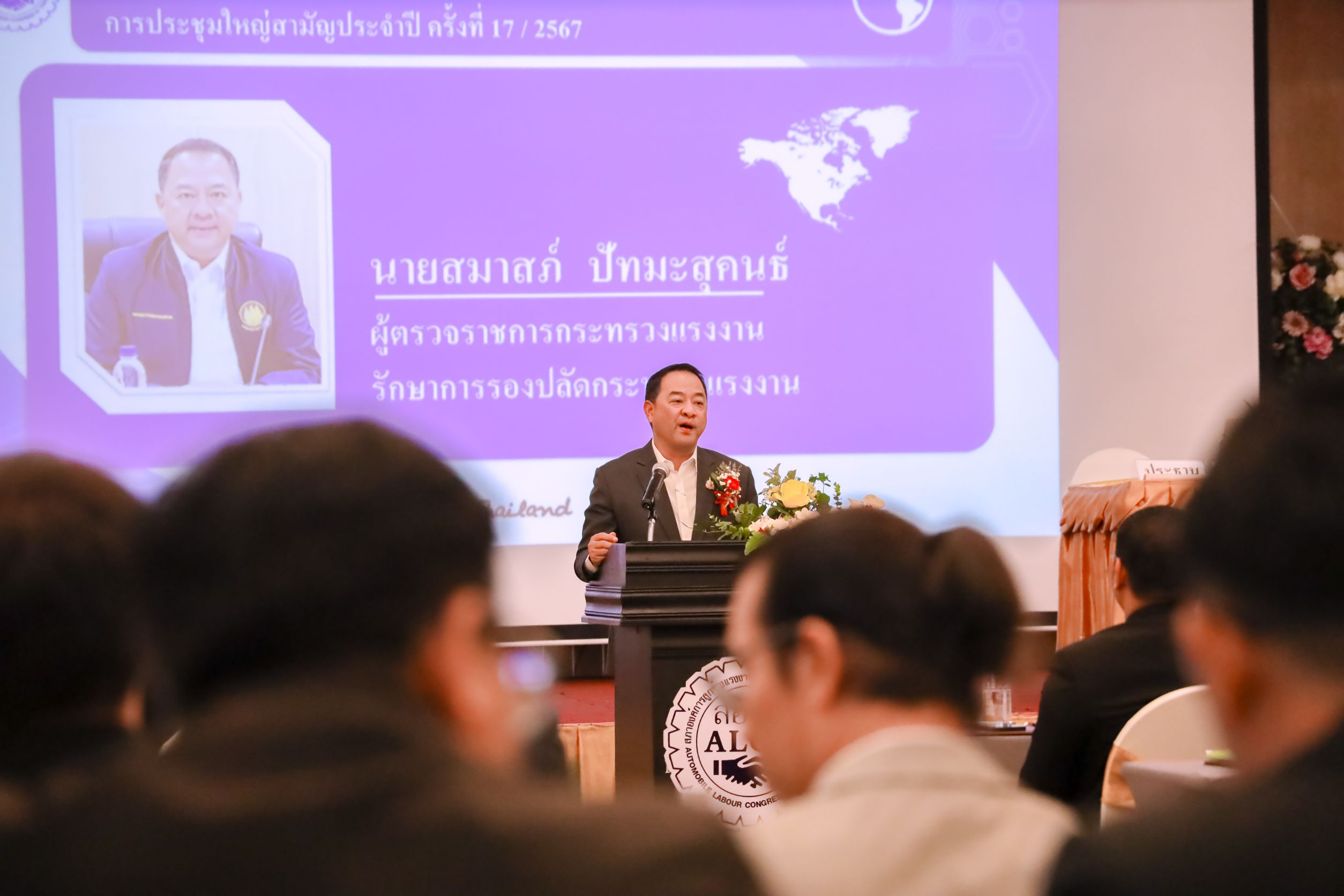 วันที่ 23 พฤศจิกายน 2567 เวลา 13.00 น. นายบุญสงค์ ทัพชัยยุทธ์ ปลัดกระทรวงแรงงาน มอบหมายให้ นายสมาสภ์ ปัทมะสุคนธ์ รองปลัดกระทรวงแรงงาน ร่วมเป็นเกียรติในงานประชุมใหญ่สามัญประจำปี ครั้งที่ 17/2567 สภาองค์การลูกจ้างแรงงานยานยนต์แห่งประเทศไทย โดยมี นายธนัสถา คำมาวงษ์ ประธานสภาองค์การลูกจ้างแรงงานยานยนต์แห่งประเทศไทย เป็นประธานกล่าวเปิดการประชุม โดยมี นายมนัส โกศล ประธานสภาองค์การลูกจ้างพัฒนาแรงงานแห่งประเทศไทย คณะที่ปรึกษาสภาองค์การลูกจ้างแรงงานยานยนต์แห่งประเทศไทย ร่วมเป็นเกียรติ สมาชิกสภาองค์การลูกจ้างแรงงานยานยนต์แห่งประเทศไทย หัวหน้าส่วนราชการสังกัดกระทรวงแรงงานจังหวัดชลบุรี ร่วมให้การต้อนรับ ณ โรงแรมเบย์ บรีช รีสอร์ท พัทยา จังหวัดชลบุรี