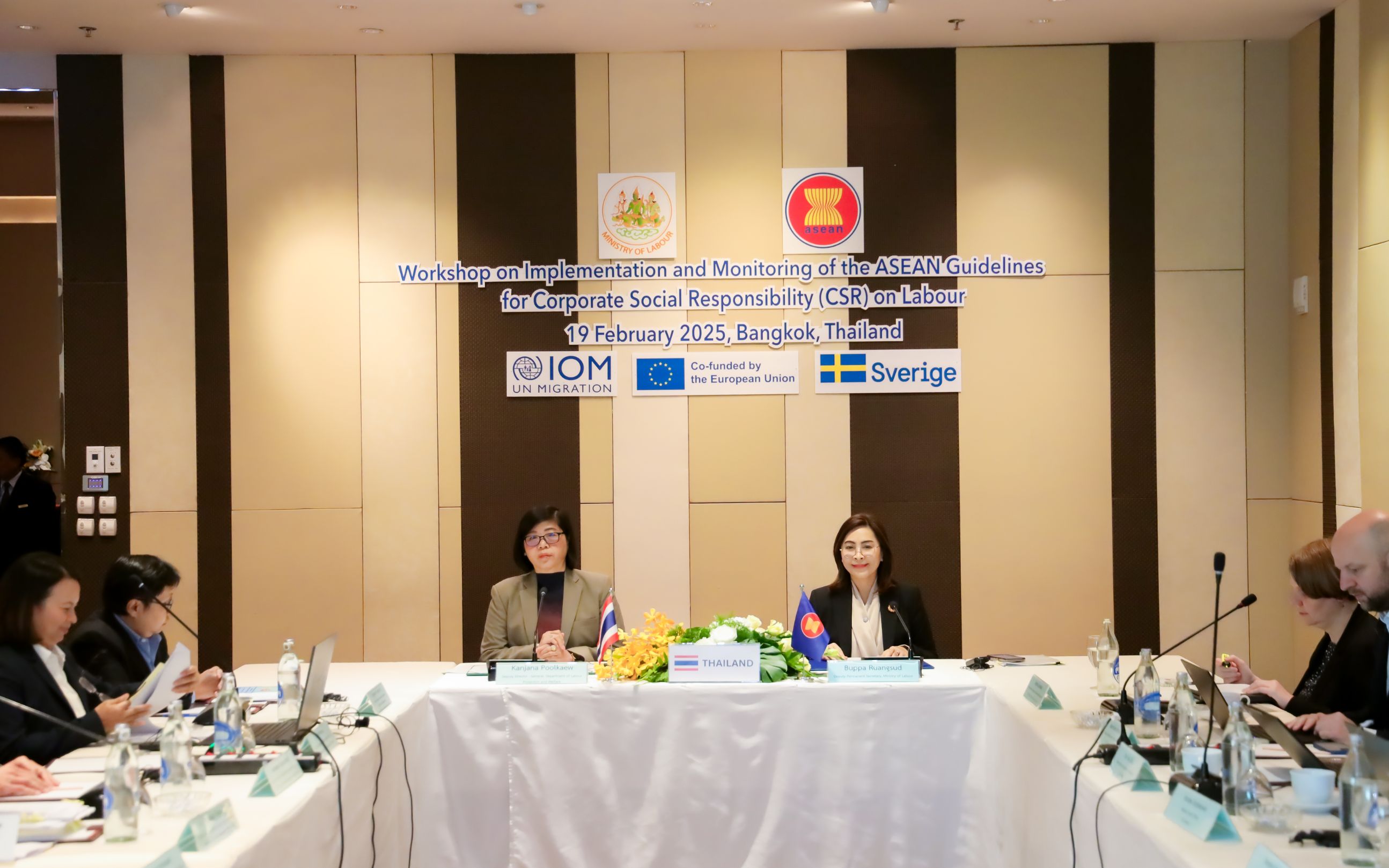 วันที่ 19 กุมภาพันธ์ 2568 เวลา 09.00 น. นายบุญสงค์ ทัพชัยยุทธ์ ปลัดกระทรวงแรงงาน มอบหมายให้ นางสาวบุปผา เรืองสุด รองปลัดกระทรวงแรงงาน เป็นประธานเปิดการประชุมเชิงปฏิบัติการ เรื่อง การดำเนินการและติดตามผลการนำแนวทางอาเซียนว่าด้วยความรับผิดชอบต่อสังคมด้านแรงงาน ไปปฏิบัติ (Implementation and Monitoring of the ASEAN Guidelines for corporate Social Responsibility (CSR) on Labour) โดยมี คุณโจชัว โก๊ะ กระทรวงทรัพยากรมนุษย์ ประธานคณะกรรมการเจ้าหน้าที่อาวุโสแรงงานอาเซียน ผศ.ดร. ภาณุภัทร จิตเที่ยง ผู้แทนไทยในคณะกรรมาธิการระหว่างรัฐบาลอาเซียนว่าด้วยสิทธิมนุษยชน คุณเมก้า อิเรน่า ผู้แทนสำนักเลขาธิการอาเซียน ผู้แทนสภาอุตสาหกรรมแห่งประเทศไทย สภาองค์การนายจ้างฯ และสภาองค์การลูกจ้างฯ ในนามผู้แทนไตรภาคี ผู้แทนจากองค์กรภาคีเครือข่ายของอาเซียน ILO และ IOM เข้าร่วม ณ ห้องช่องนนทรี ชั้น 12 โรงแรมอีสติน แกรนด์ สาทร กรุงเทพมหานคร