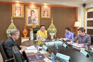 วันที่ 13 พฤษภาคม 2568 เวลา 08.00 น. นายบุญสงค์ ทัพชัยยุทธ์ ปลัดกระทรวงแรงงาน มอบหมายให้ นางสาวบุปผา เรืองสุด รองปลัดกระทรวงแรงงาน ร่วมการประชุมคณะกรรมการกองทุนหมู่บ้านและชุมชนเมืองแห่งชาติ ผ่านระบบสื่ออิเล็กทรอนิกส์ ณ ห้องปฏิบัติราชการรองปลัดกระทรวงแรงงาน ชั้น 7 อาคารกระทรวงแรงงาน โดยมี นายประเสริฐ จันทรรวงทอง รองนายกรัฐมนตรีและรัฐมนตรีว่าการกระทรวงดิจิทัลเพื่อเศรษฐกิจและสังคม ประธานกรรมการกองทุนหมู่บ้านและชุมชนเมืองแห่งชาติ เป็นประธานการประชุม หน่วยงานที่เกี่ยวข้องเข้าร่วมประชุม
