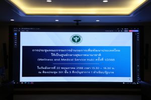สำหรับการประชุมในครั้งนี้ คณะกรรมการอำนวยการเพื่อพัฒนาประเทศไทยให้เป็นศูนย์กลางสุขภาพนานาชาติ ได้พิจารณาแผนการขับเคลื่อนโยบายการพัฒนาประเทศไทยให้เป็นศูนย์กลางสุขภาพนานาชาติ ด้วยกลไกคณะอนุกรรมการเพื่อพัฒนาประเทศไทยให้เป็นศูนย์กลางสุขภาพนาพนานาชาติ 6 คณะ และได้แจ้งให้ที่ประชุมทราบในส่วนของโครงสร้างในการขับเคลื่อนโยบายการพัฒนาประเทศไทยให้เป็นศูนย์กลางสุขภาพนานาชาติ และสถานการณ์ด้านเศรษฐกิจสุขภาพและเป้าหมายในการขับเคลื่อนนโยบายการพัฒนาประเทศไทยให้เป็นศูนย์กลางสุขภาพนานาชาติ