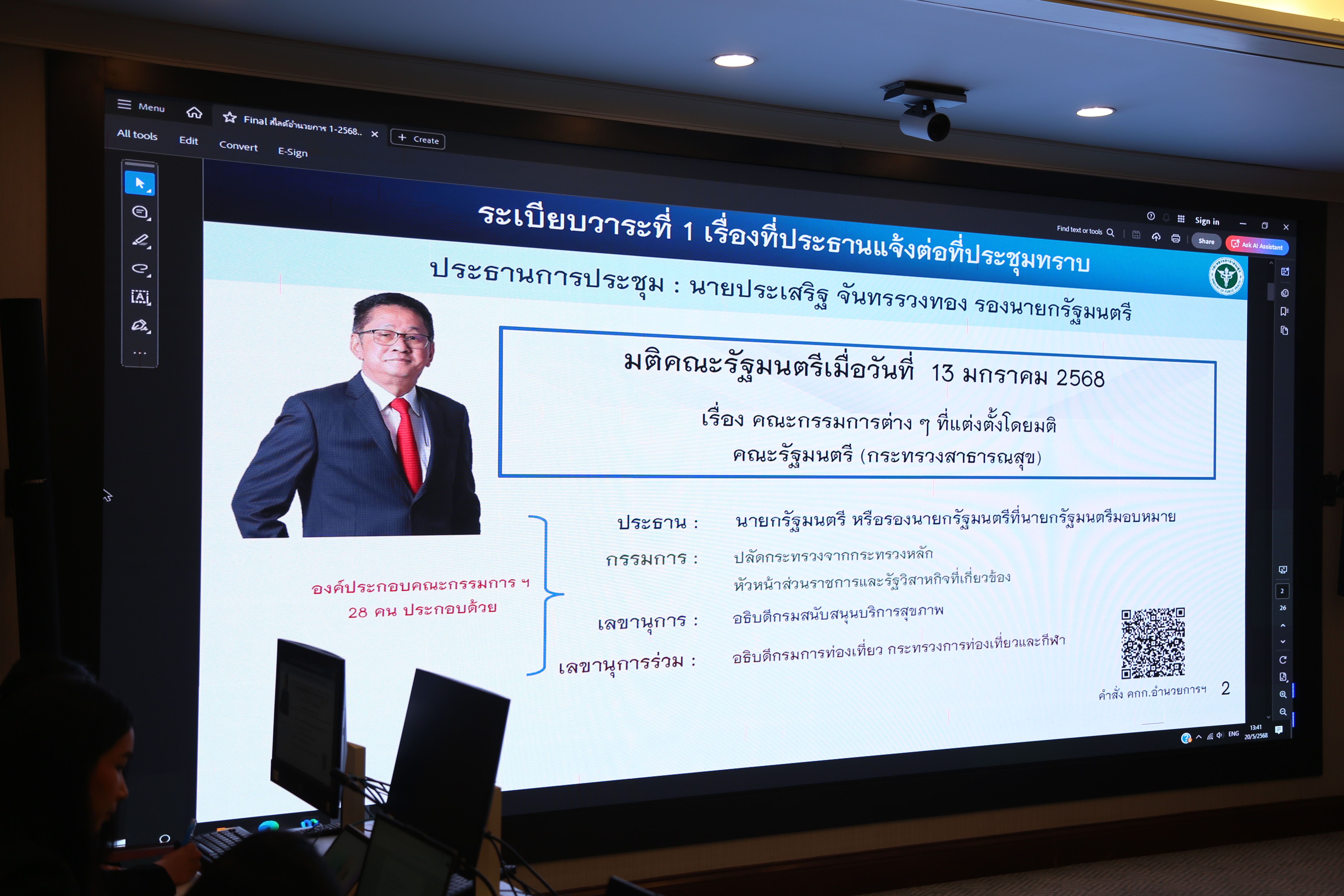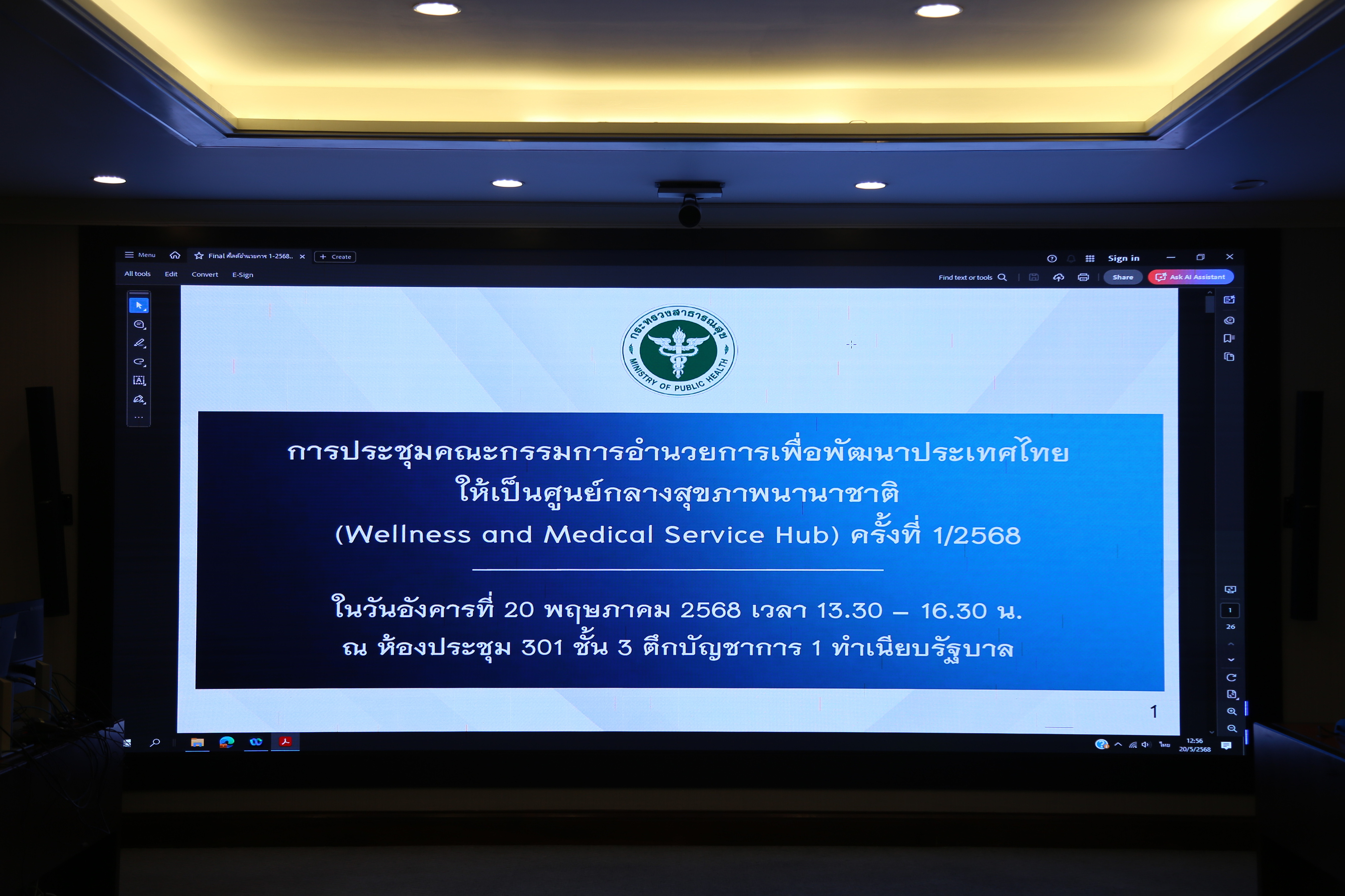 วันที่ 20 พฤษภาคม 2568 เวลา 13.30 น. นายบุญสงค์ ทัพชัยยุทธ์ ปลัดกระทรวงแรงงาน มอบหมายให้ นายสันติ นันตสุวรรณ รองปลัดกระทรวงแรงงาน เข้าร่วมการประชุมคณะกรรมการอำนวยการเพื่อพัฒนาประเทศไทยให้เป็นศูนย์กลางสุขภาพนานาชาติ (Wellness and Medical Service Hub) ครั้งที่ /1 2568 โดยมี นายประเสริฐ จันทรรวงทอง รองนายกรัฐมนตรี เป็นประธานการประชุม ณ ห้องประชุม 301 ชั้น 3 ตึกบัญชาการ 1 ทำเนียบรัฐบาล