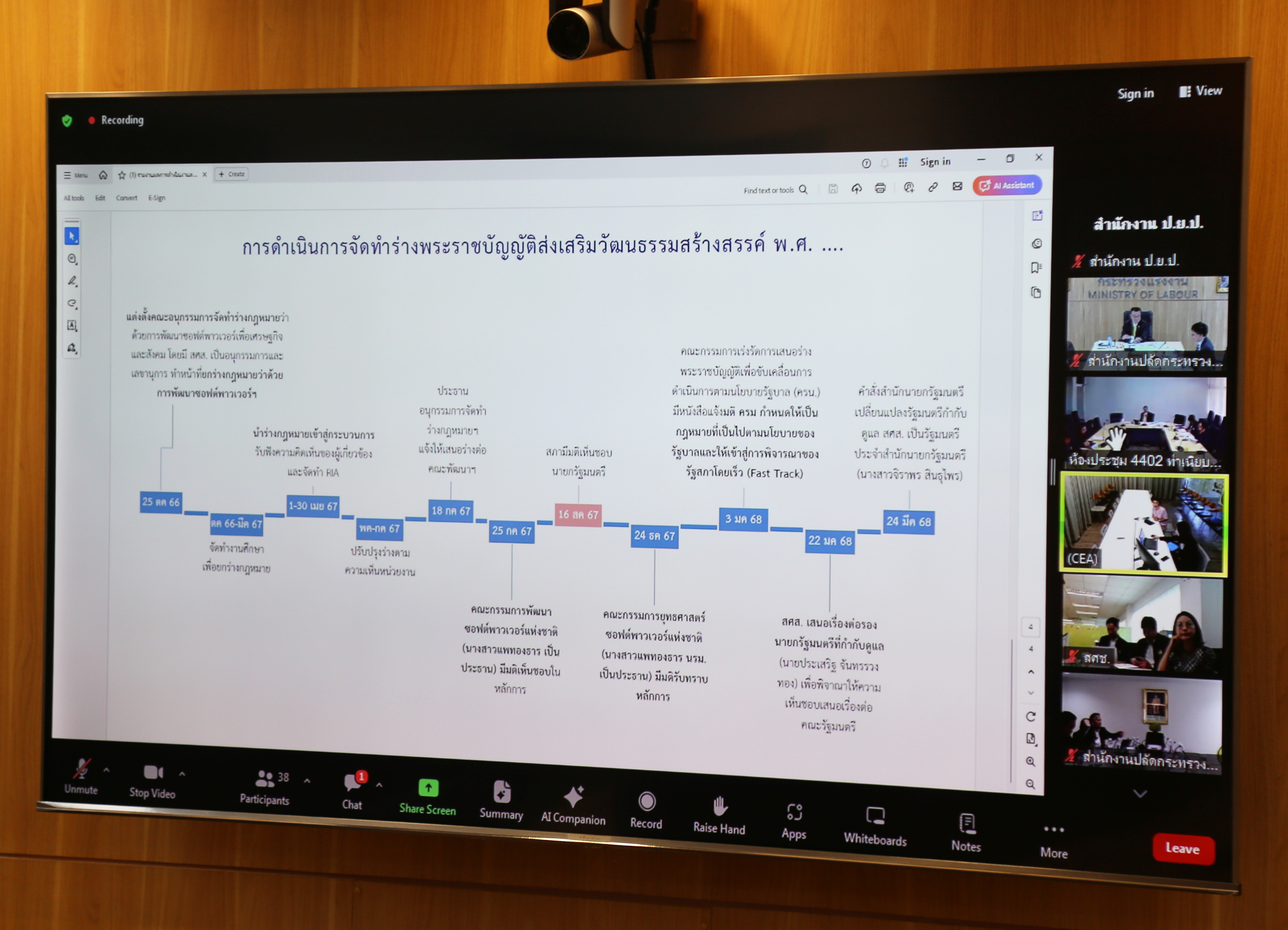 วันที่ 2 เมษายน 2568 เวลา 13.30 น. นายบุญสงค์ ทัพชัยยุทธ์ ปลัดกระทรวงแรงงาน มอบหมายให้ นายสันติ นันตสุวรรณ รองปลัดกระทรวงแรงงาน เข้าร่วมการประชุมหารือฝ่ายเลขานุการคณะกรรมการติดตามนโยบายรัฐบาลและข้อสั่งการนายกรัฐมนตรี ประเด็นยกระดับทักษะ ปลดล็อกศักยภาพของคนไทย ผ่านระบบการประชุมทางไกลโดยใช้โปรแกรม Zoom Meeting ณ ห้องประชุมกองยุทธศาสตร์และแผนงาน ชั้น 13 อาคารกระทรวงแรงงาน