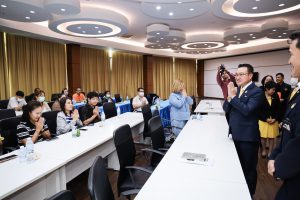 นายสันติ กล่าวต่อว่า นายก และคณะกรรมการของ สสดย. ได้เข้าพบ ท่านพิพัฒน์ รัชกิจประการ รัฐมนตรีว่าการกระทรวงแรงงาน เพื่อหารือถึงแนวทางความร่วมมือเพื่อขับเคลื่อนมติคณะรัฐมนตรี ด้านการสร้างสังคมแห่งการเรียนรู้ และการเสริมสร้างการรู้เท่าทันสื่อ พร้อมขยายผลโครงการให้เกิดการปฏิบัติอย่างเป็นรูปธรรม ซึ่งท่านรัฐมนตรี ได้ให้การสนับสนุนอย่างเต็มที่ และมอบหมายให้สำนักงานปลัดกระทรวงแรงงานเป็นกลไกหลักในการขับเคลื่อนแผนปฏิบัติการ โดยมีการประชุมร่วมกับหน่วยงานที่เกี่ยวข้อง จนได้ข้อสรุปร่วมกันในการจัดกิจกรรมนำร่องในพื้นที่จังหวัดสมุทรปราการ พร้อมเตรียมการเผยแพรข้อมูล ความรู้ เพื่อเสริมสร้างการรู้เท่าทันสื่อ เท่าทันเทคโนโลยี ให้แก่บุคลากรในกระทรวงแรงงาน และแรงงานทั้งในระบบและนอกระบบทั่วประเทศ กว่า 40 ล้านคน ผ่านช่องทางต่างๆ อย่างเหมาะสม และทั่วถึง
