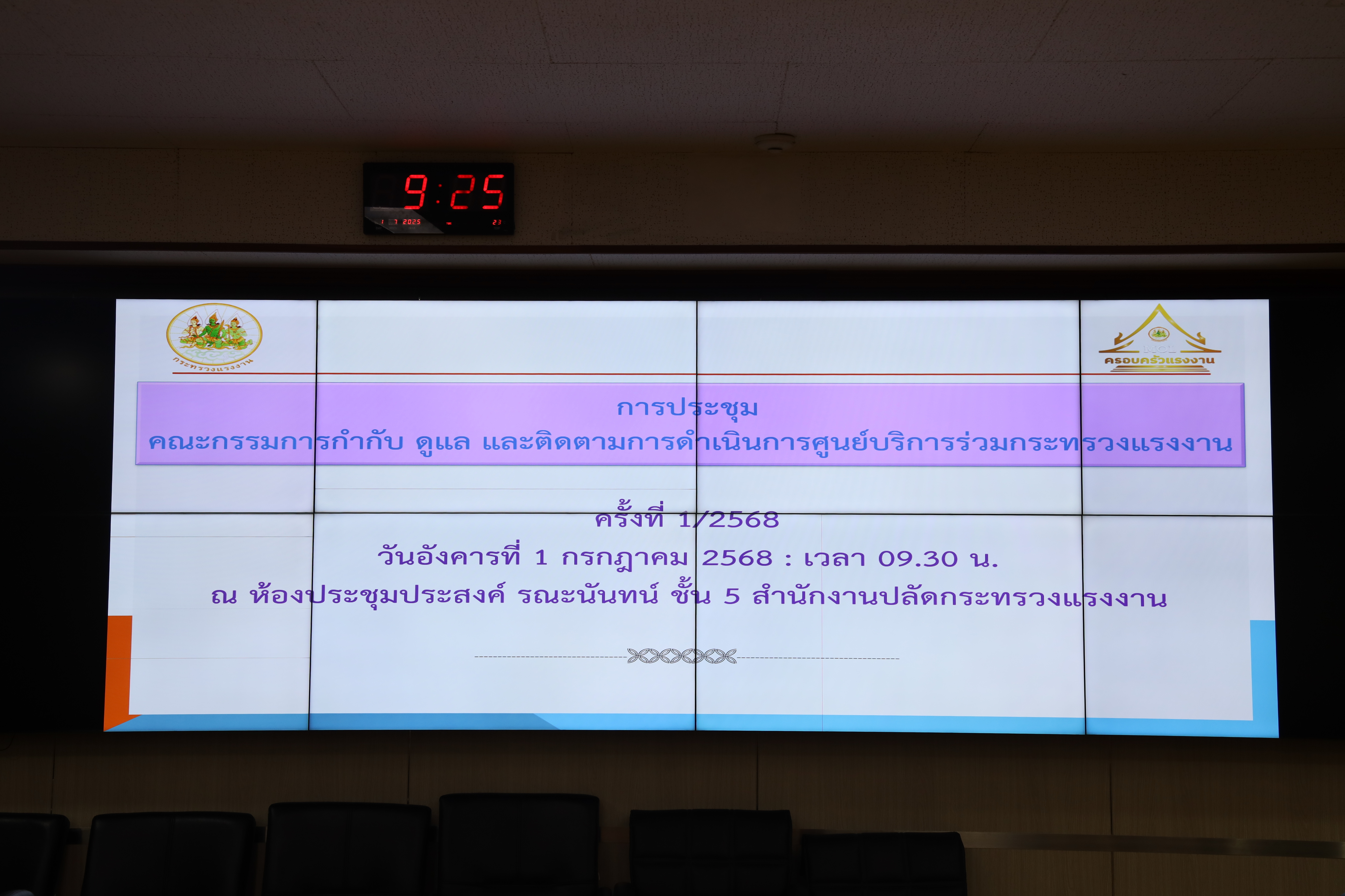วันที่ 1 กรกฎาคม 2568 เวลา 09.30 น. นายบุญสงค์ ทัพชัยยุทธ์ ปลัดกระทรวงแรงงาน มอบหมายให้ นายสันติ นันตสุวรรณ รองปลัดกระทรวงแรงงาน เป็นประธานการประชุมคณะกรรมการกำกับ ดูแลและติดตามการดำเนินการศูนย์บริการร่วมกระทรวงแรงงาน ครั้งที่ 1/2568 ณ ห้องประชุมประสงค์ รณะนันทน์ ชั้น 5 อาคารกระทรวงแรงงาน