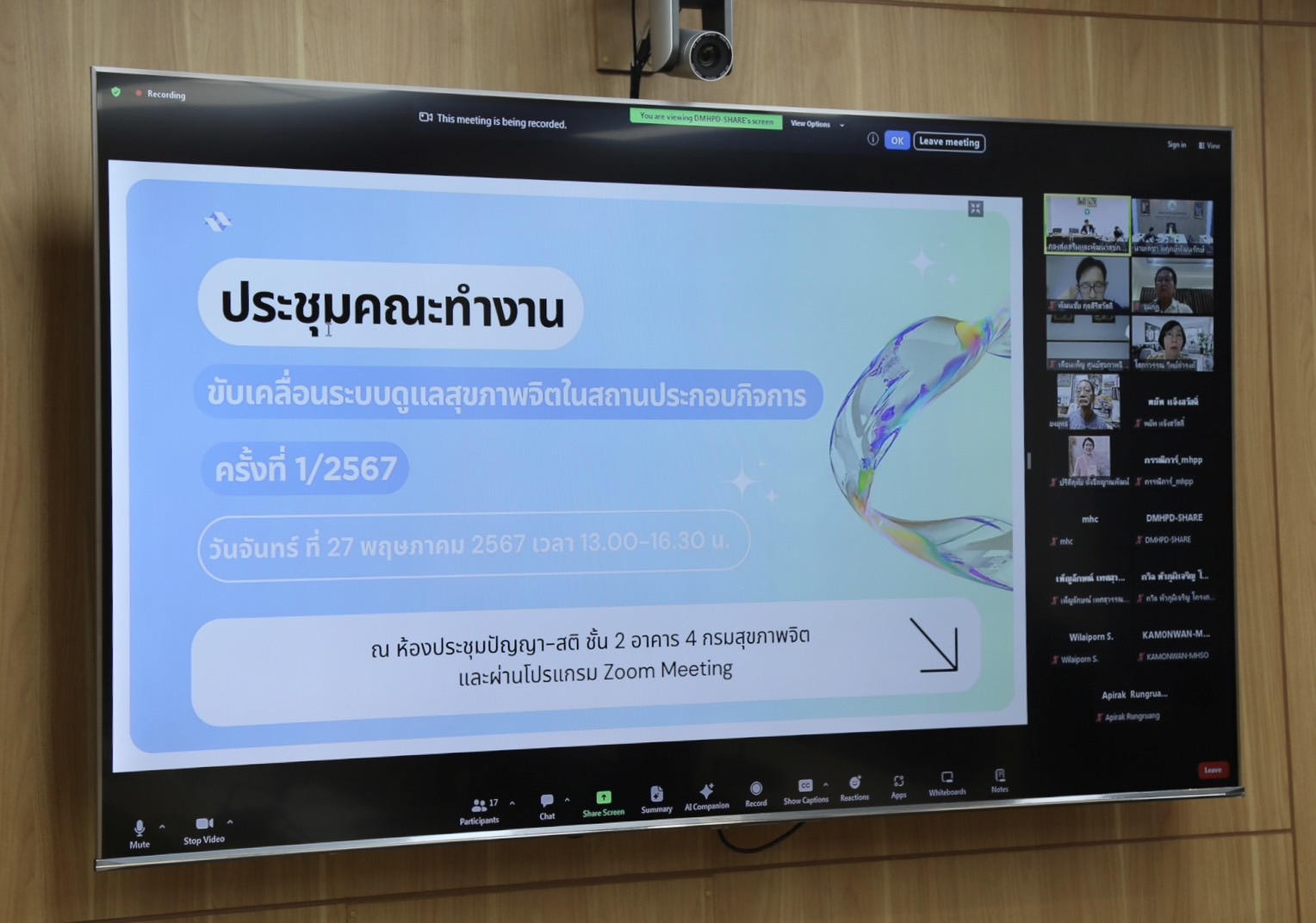 วันที่ 27 พฤษภาคม 2567 เวลา 13.30 น. นายไพโรจน์ โชติกเสถียร ปลัดกระทรวงแรงงาน มอบหมายให้ นายเดชา พฤกษ์พัฒนรักษ์ รองปลัดกระทรวงแรงงาน เป็นประธานการประชุมคณะทำงานขับเคลื่อนระบบดูแลสุขภาพจิตในสถานประกอบการ ครั้งที่1/2567 และผ่านระบบวิดิทัศน์ทางไกล (Video Conference) ณ ห้องประชุมกองยุทธศาสตร์และแผนงาน ชั้น 13 อาคารกระทรวงแรงงาน โดยที่ประชุมได้พิจารณาเกี่ยวกับ 1.แผนการดำเนินงานต่อการขับเคลื่อนระบบสุขภาพจิตในสถานประกอบกิจการต่อไป และ 2.สรุปรายงานเพื่อนำเสนอต่อคณะกรรมการสุขภาพจิตแห่งชาติ