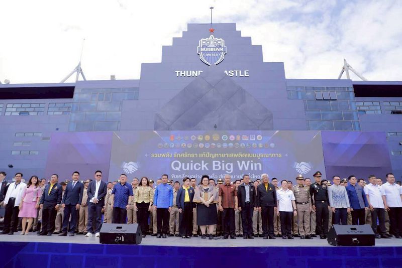 วันที่ 24 ตุลาคม 2568 เวลา 07.45 น. พันตำรวจโท วรรณพงษ์ คชรักษ์ ปลัดกระทรวงแรงงาน มอบหมายให้ นายสันติ นันตสุวรรณ รองปลัดกระทรวงแรงงาน ร่วมเป็นเกียรติ และร่วมแสดงพลังในการต่อต้านยาเสพติดในงาน “รวมพลัง รักศรัทธา แก้ปัญหายาเสพติดแบบบูรณาการ” เพื่อขับเคลื่อนการป้องกันและแก้ไขปัญหายาเสพติดอย่างบูรณาการทั่วประเทศ Big Quick Win : ขับเคลื่อนอย่างรวดเร็ว สู่ชัยชนะที่ยิ่งใหญ่ โดยมี นายโสภณ ซารัมย์ รองนายกรัฐมนตรี เป็นประธานในพิธี ผู้บริหาร หน่วยงาน ที่เกี่ยวข้อง และผู้ว่าราชการจังหวัดในภาคตะวันออกเฉียงเหนือ 20 จังหวัดเข้าร่วม ณ สนามกีฬา ธันเดอร์ คาสเซิล สเตเดียม (ช้างอารีนา) จังหวัดบุรีรัมย์