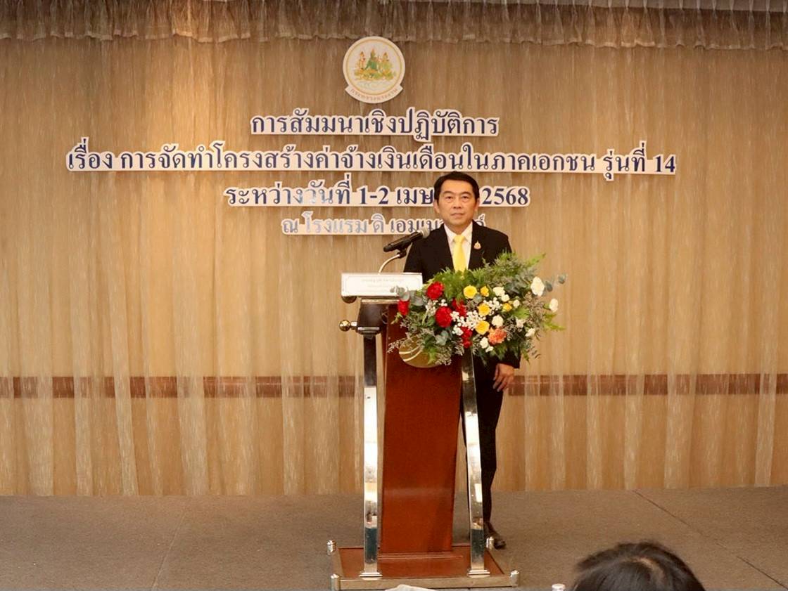 วันที่ 1 เมษายน 2568 เวลา 09.00 น. นายบุญสงค์ ทัพชัยยุทธ์ ปลัดกระทรวงแรงงาน มอบหมายให้ นายณัฐวุฒิ ภัทรประยูร จัดหางานจังหวัดร้อยเอ็ด รักษาการในตำแหน่งที่ปรึกษาวิชาการแรงงาน เป็นประธานในพิธีเปิดการสัมมนาเชิงปฏิบัติการ เรื่อง การจัดทำโครงสร้างค่าจ้างเงินเดือนในภาคเอกชน รุ่นที่ 14 โดยมี นายพิชิตร สุวรรณมาก ผู้อำนวยการกองเศรษฐกิจการแรงงาน เป็นผู้กล่าวรายงาน และมีผู้เข้าร่วมการสัมมนา จำนวน 42 คน ณ ห้องพาโนรามา 1 ชั้น 14 โรงแรม ดิ เอมเมอรัลด์ ถนนรัชดาภิเษก กรุงเทพมหานคร